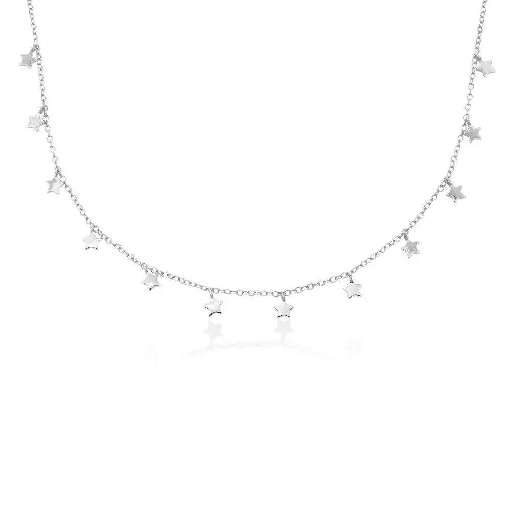 Our Star Choker Necklace in Silver is gorgeous on its own and perfect for wearing with other layered necklaces! This lovely piece showcases delicate, dangling stars that dance beautifully as you move. presented on an elegant chain, each little star offers a gorgeous gleam of its own. This necklace is made with Sterling Silver. It features: