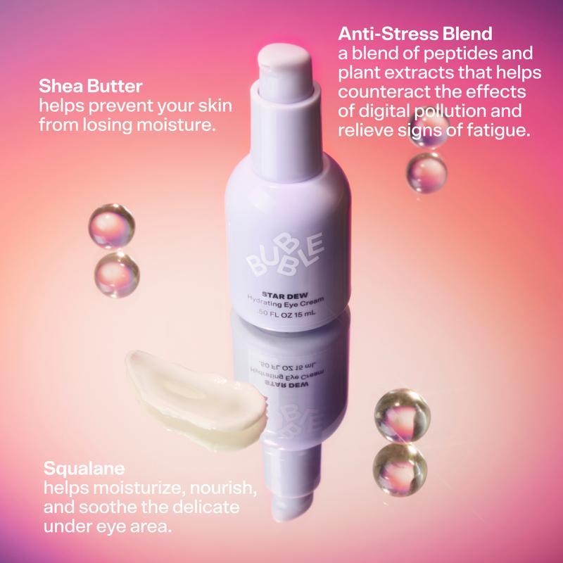 BELIEVE YOUR EYES. Star Dew Hydrating Eye Cream delivers unbelievably rich, luminous hydration to dry, fatigued under eyes. A star-crossed blend of peptides and plant extracts helps nourish skin, soothe dryness, prevent moisture loss, and turn eye cream deniers into believers. Your earthling face will never be the same!