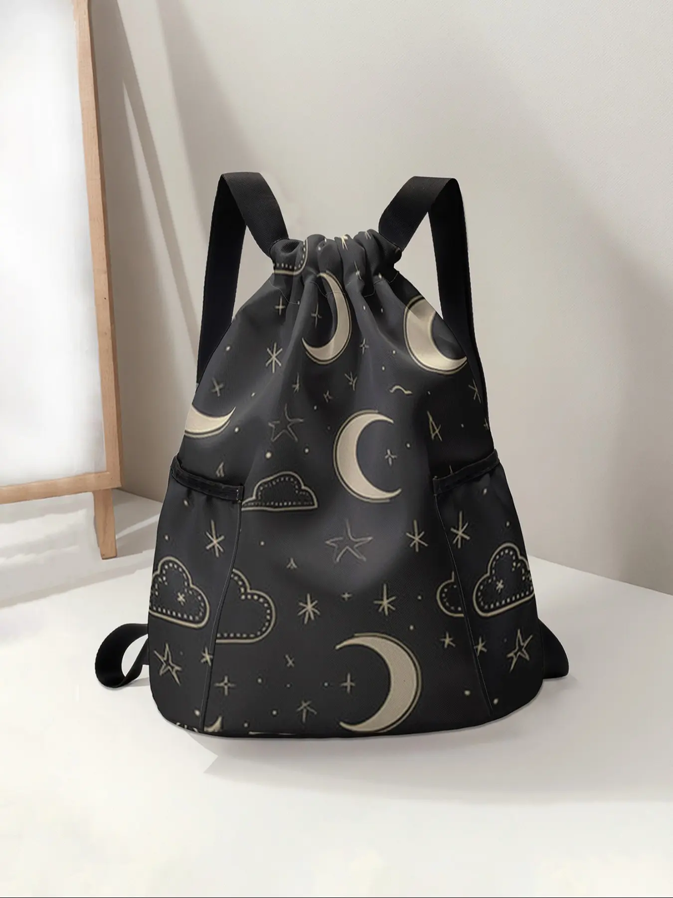 Star Moon Print Drawstring Backpack, Large Capacity Durable Fitness Bag, Casual Sports Bag, Adjustable Shoulder Straps, Sports Beach Bag for Men & Women