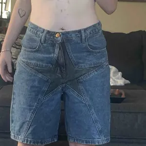 A bit high waisted, but super cute and flattering on the butt. love the star patch and the bother and the fit around legs and waist.