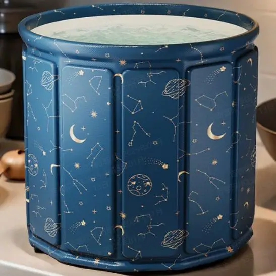 This Star pattern Fold Soaking Tub features a distinctive star design. Made from PVC + Pearl Cotton (EPE) + Oxford Cloth, it's wear-resistant and durable. The tub withstands regular use without breaking easily. Ideal for practical, long-lasting options. 🛁