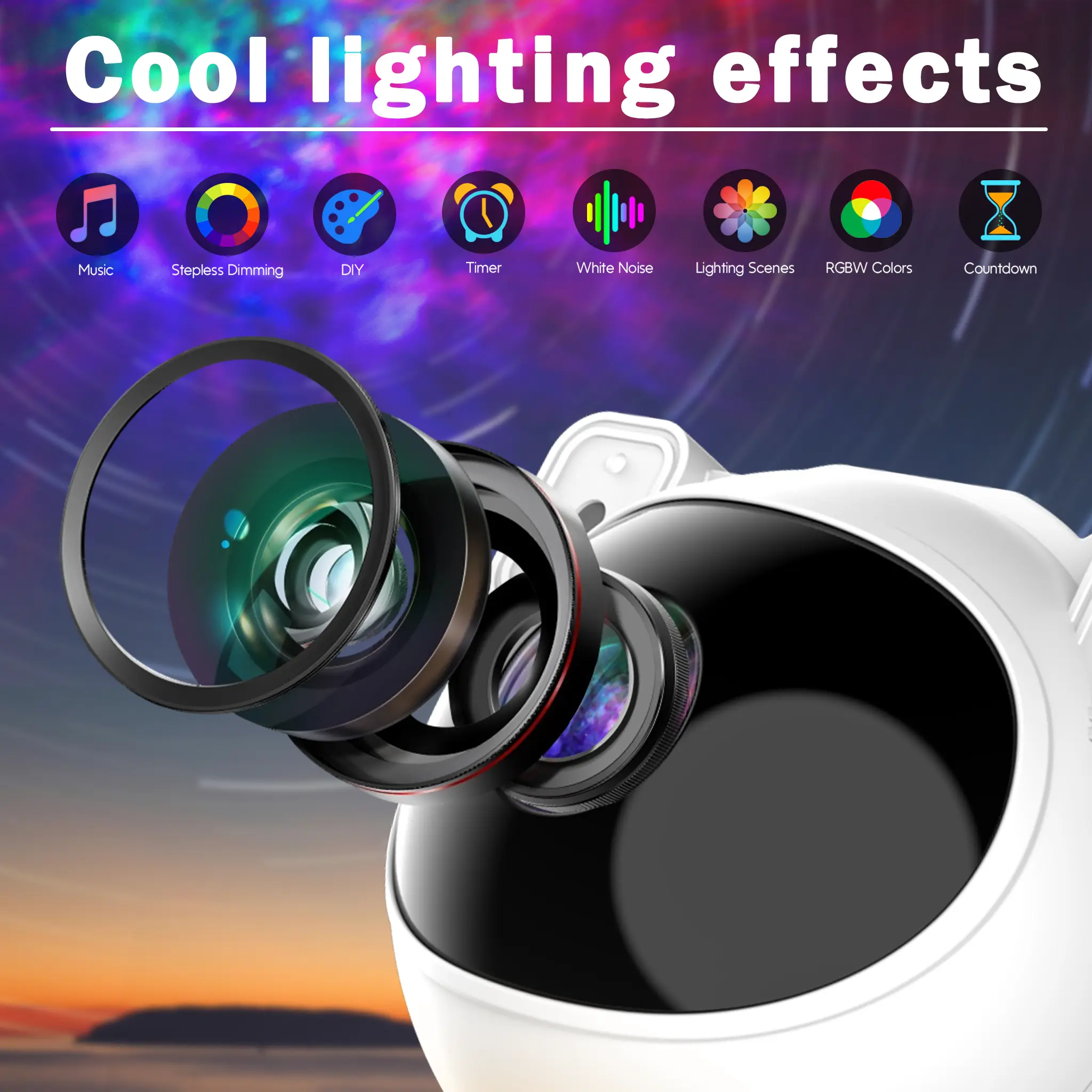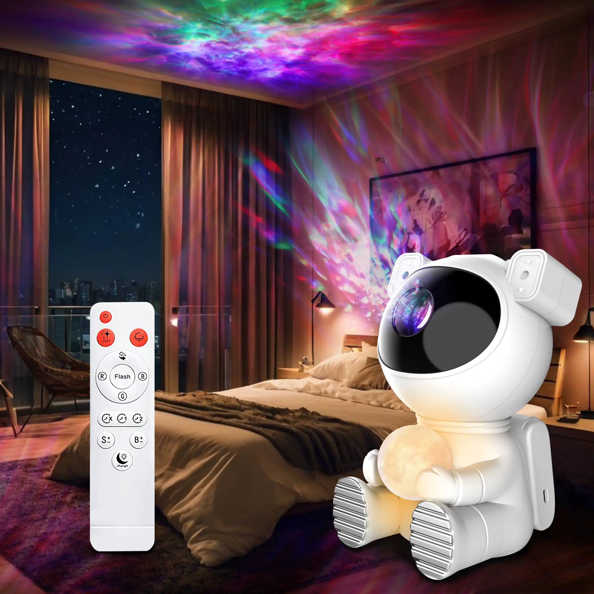 【Astronaut Galaxy Projector】This star projector with size of 5.6"D x 4.7"W x 7.67"H features an enhanced light display and a convenient night light function. The astronaut holds a moon lamp that offers 7 different colors, creating a soothing and colorful ambiance.