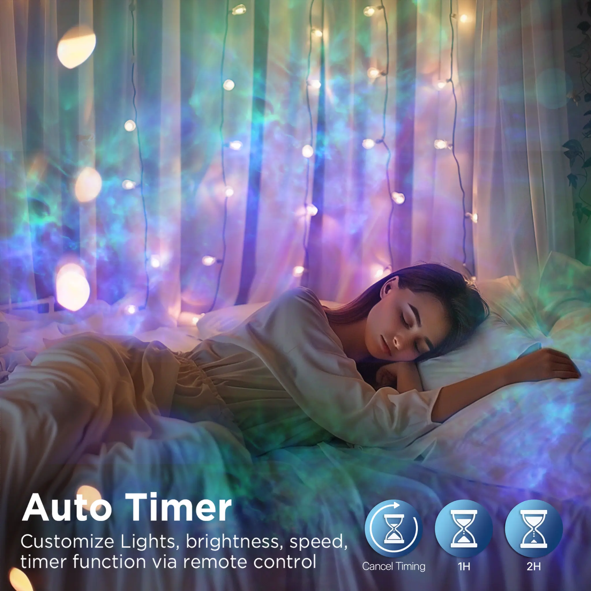 【Remote Control & Timer Function】 The star projector comes with a convenient remote control that allows you to adjust the light mode, brightness, and speed. You can also set a timer to have the projector turn off automatically after 1 or 2 hours, or it will shut off after 4 hours by default.