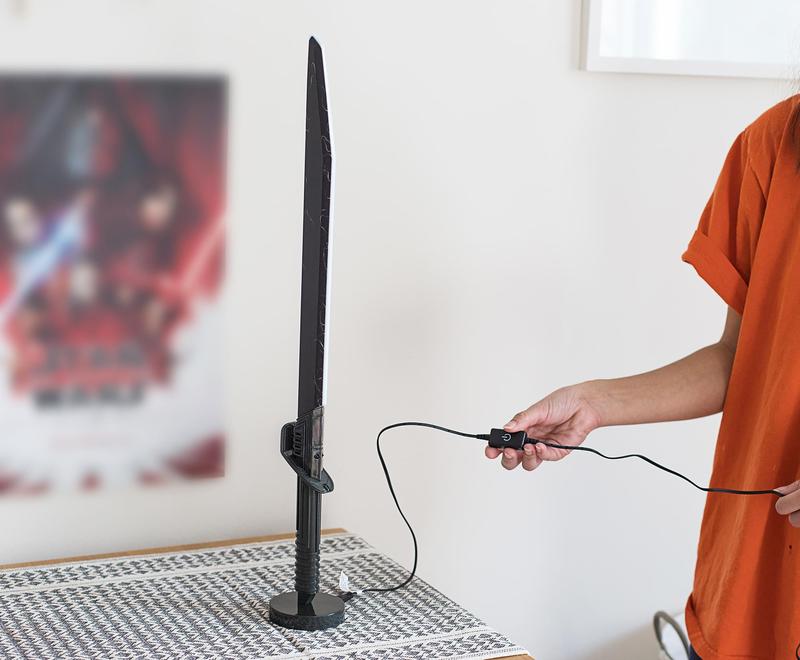 Standing almost 2 feet tall, this Star Wars Darksaber Table Lamp is modeled after the lightsaber we see in Moff Gideon's clutches in Star Wars: The Mandalorian! Using energy-efficient long-lasting LED light and USB-power, this lamp looks great plugged into your computer and displayed on your desk. For Star Wars completists or new fans, this new addition is the perfect gift.