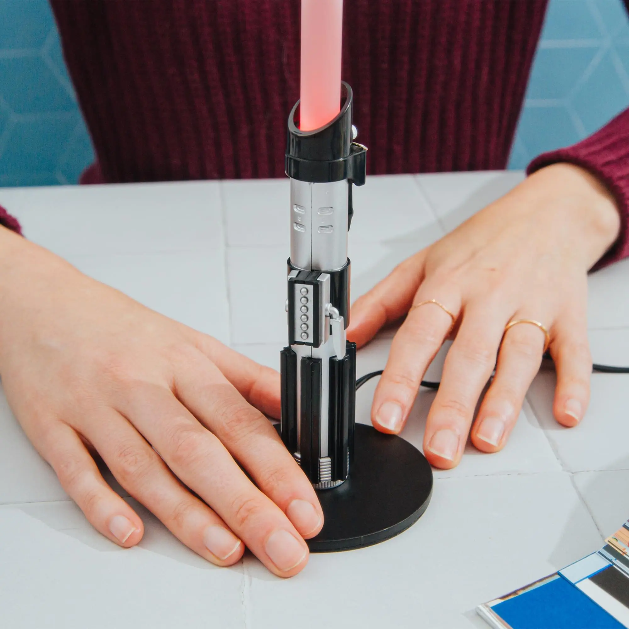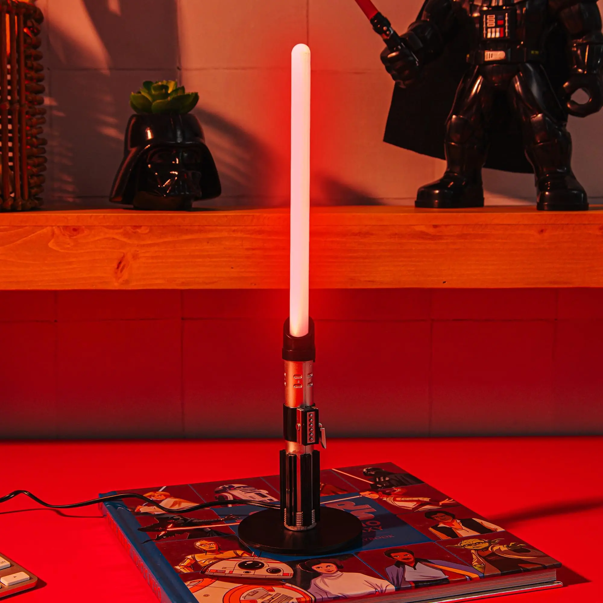 Shine some light on the Dark Side with this Star Wars Darth Vader Lightsaber Desk Light. At just a foot tall, this sinister lamp tucks into any space that could use more Star Wars (and what space couldn't?). Bedrooms, offices, dorms, game rooms. Heck, it's a great gift for a classic Star Wars fan that doubles as decoration at a birthday party, wedding, or other celebration. Hook it up to a smart plug to "use the Force" to turn it on like the true dark lord himself and show off your Sith powers to all your friends.