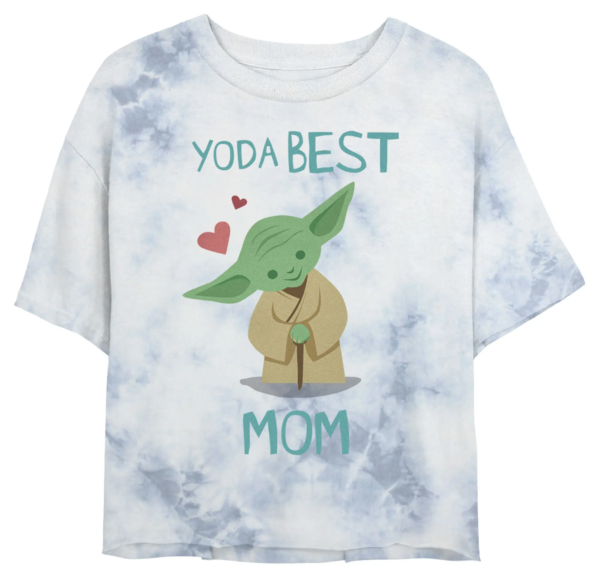 Show mom you care with this out-of-this-world officially licensed Star Wars Juniors' Mother's Day Best Mom Cartoon Yoda Graphic Cropped T-Shirt! Transport yourself to a galaxy far, far away with this new unique tee featuring an adorable animated version of Yoda with hearts floating around his head and the phrase: "Yoda Best Mom" in green lettering across the front. Celebrate Star Wars style this Mother's Day with fun new officially licensed apparel for the whole family!
