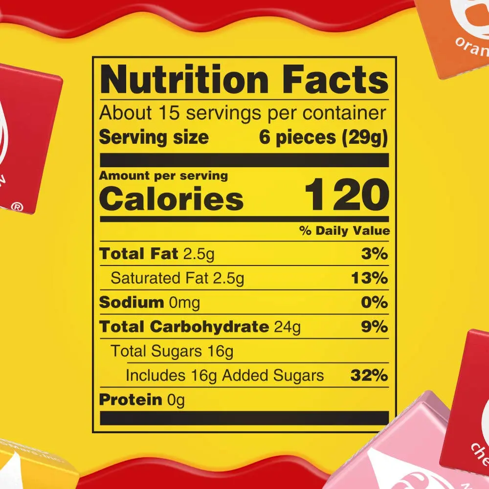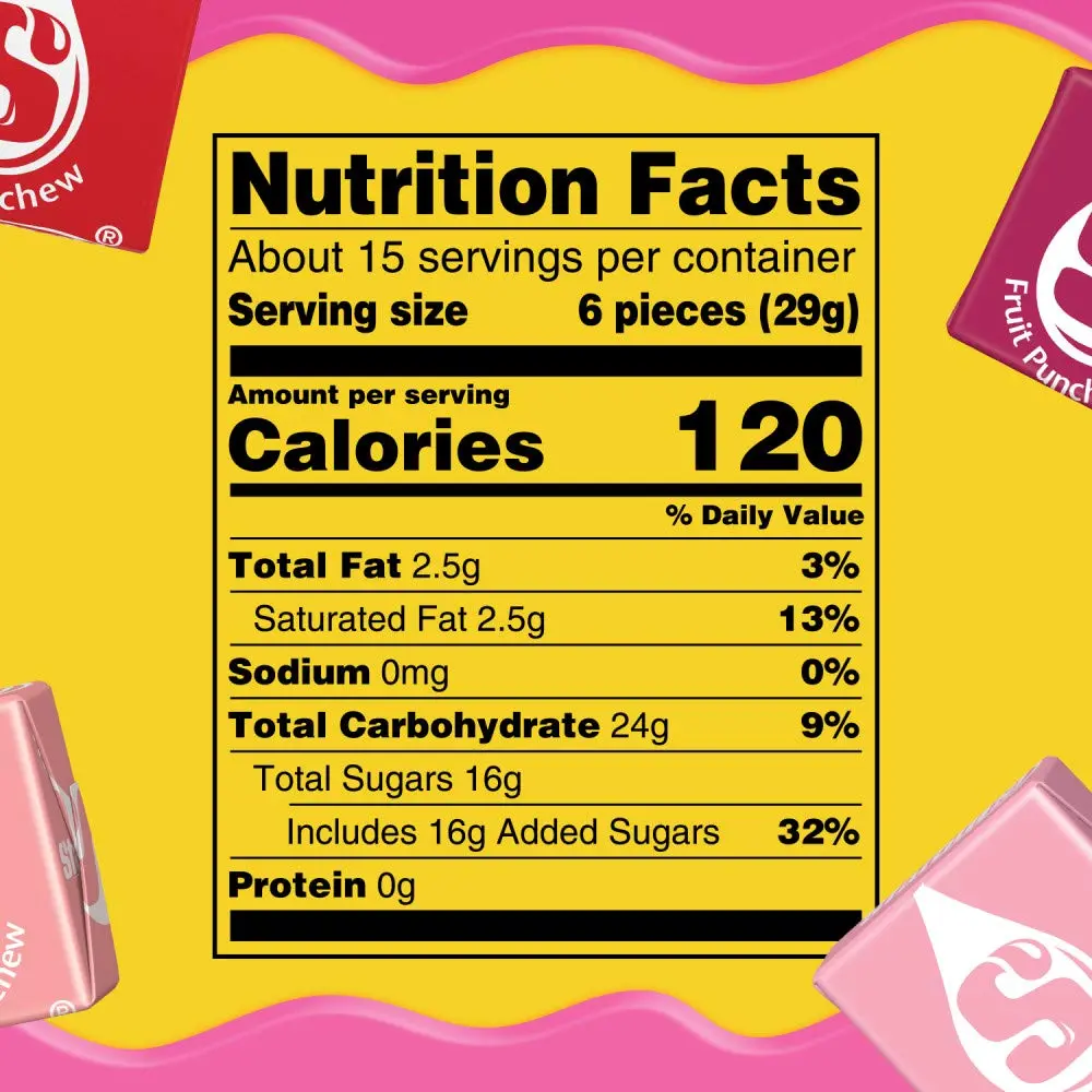 Enjoy the timeless appeal of fruit chews. The 15.6-ounce pouch provides ample candy for your enjoyment. Whether you're looking for a quick snack or a treat to share, this product delivers. No additional features or qualities are specified, ensuring focus on the basic, beloved candy. Perfect for Halloween treats and fall season spooky snacks.