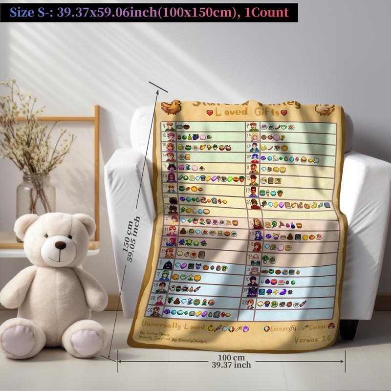 Stardew Valley Loved Gifts Flannel Bed Blanket Creative Printed Cartoon Pattern Cozy Warmth Throw for Game Fans Perfect Gift Idea