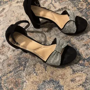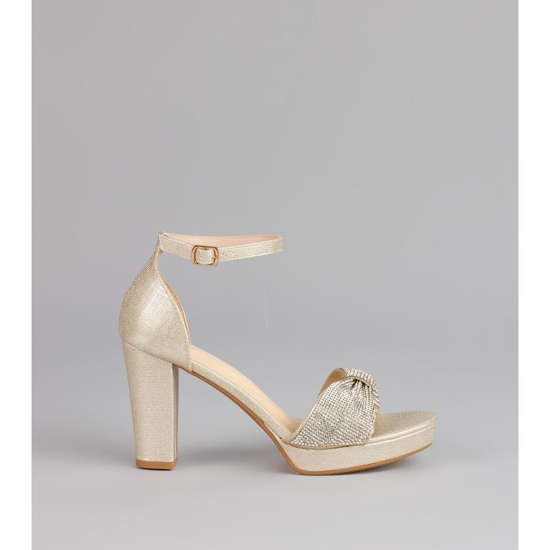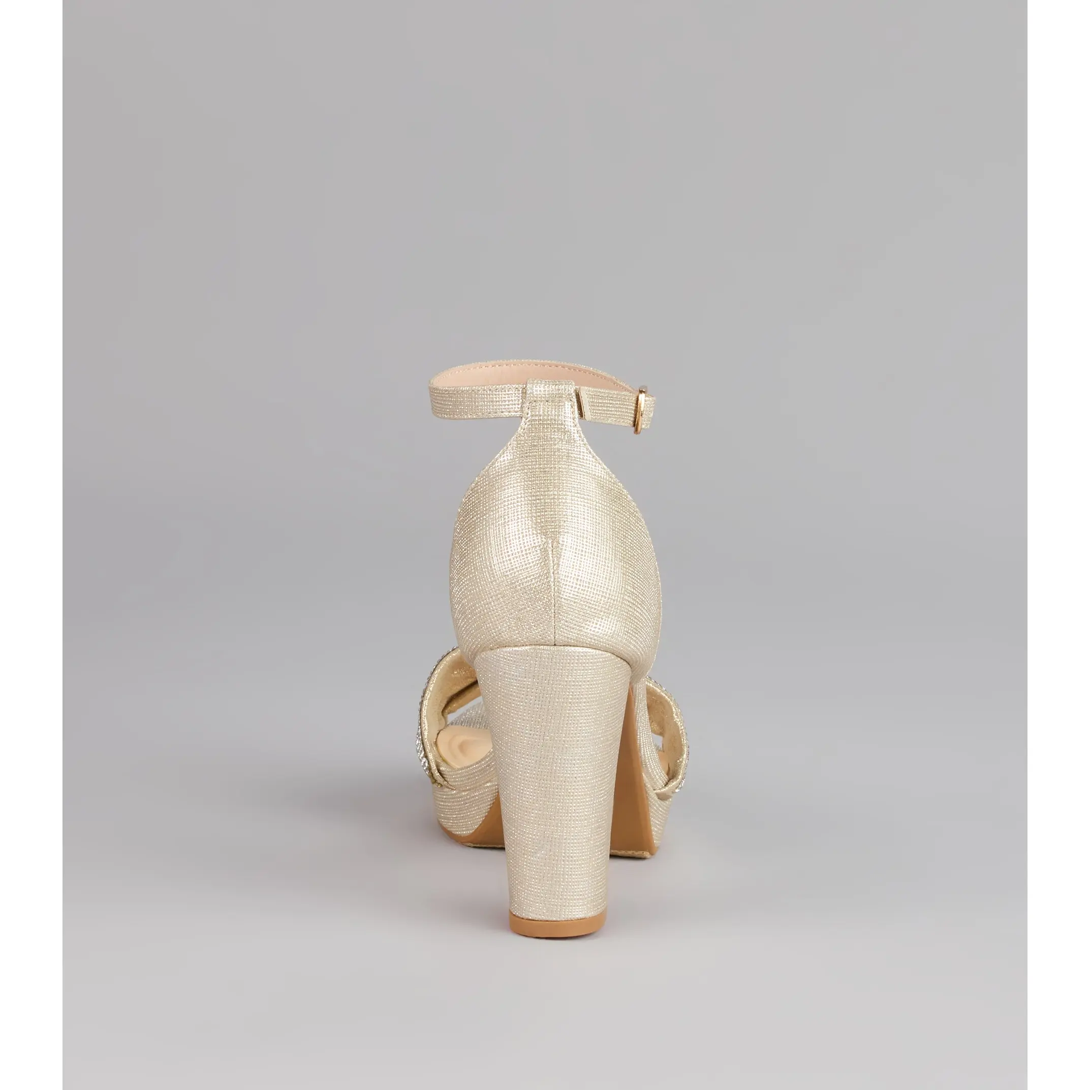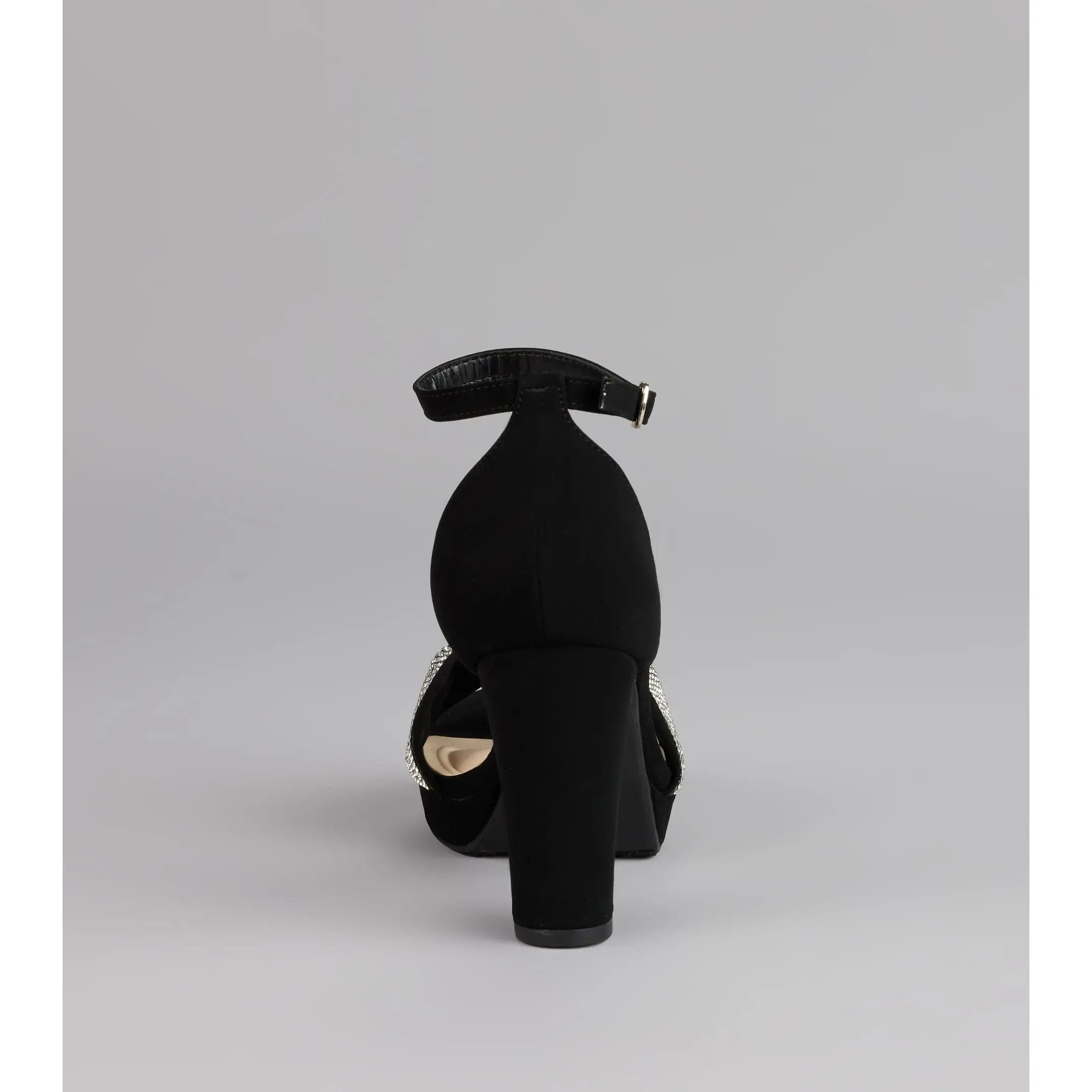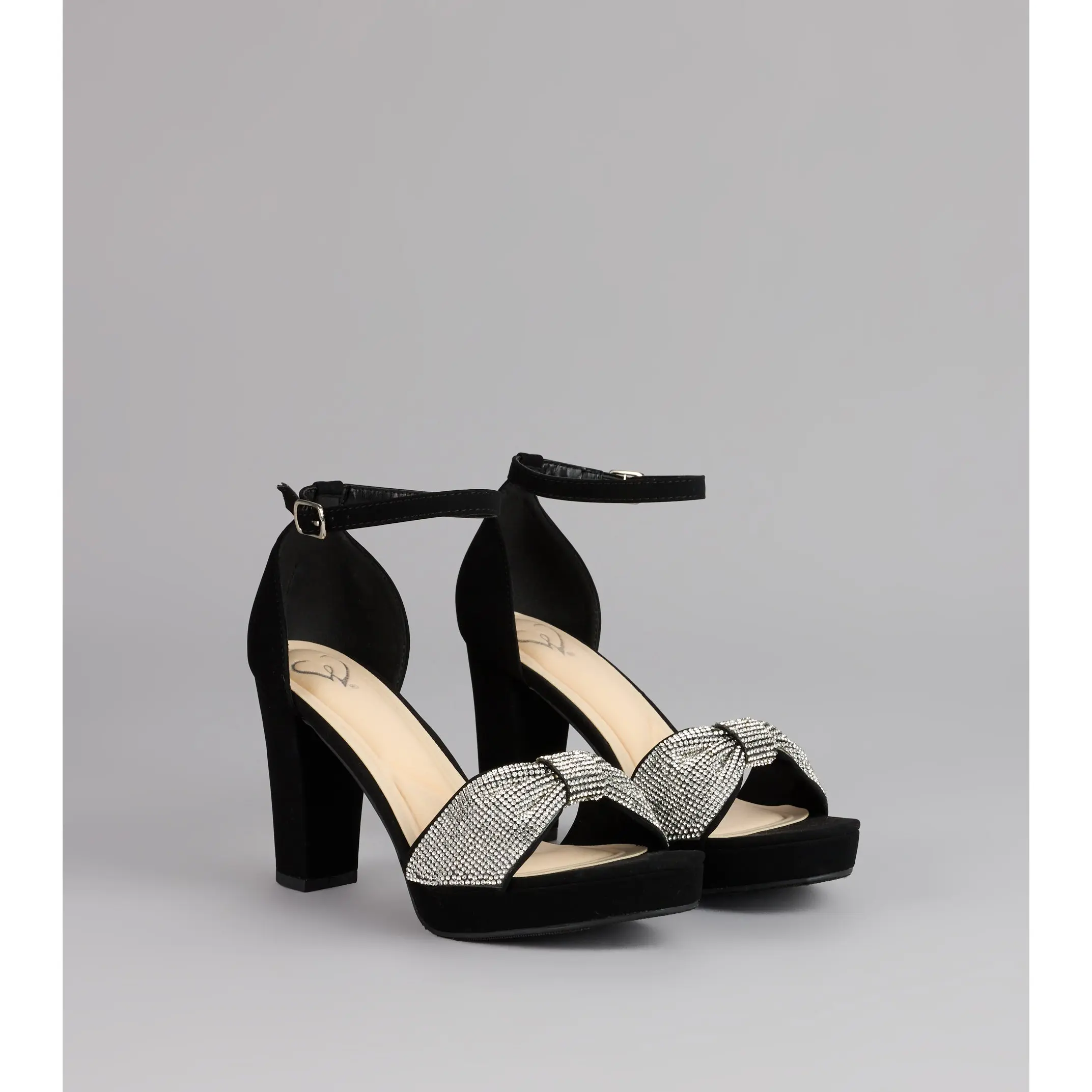 These heels are here for your grand entrance—glitter mesh, a rhinestone bow strap, and a chic almond toe all wrapped into a sky-high block platform. They bring that playful, ultra-glam vibe that turns every step into a moment.