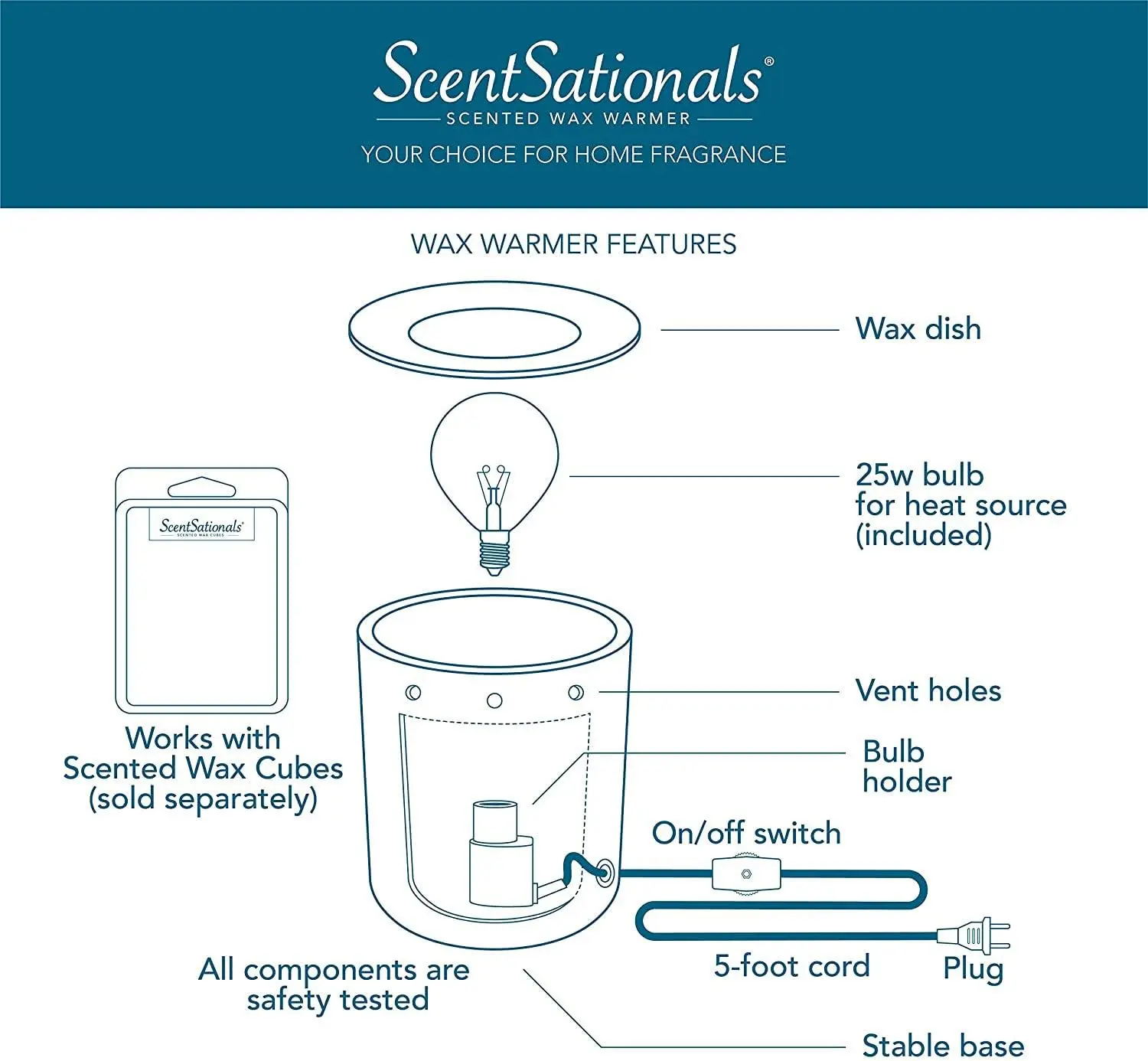 ·PAIR WITH SCENTSATIONALS WAX MELTS - Choose from hundreds of candle wax warmer fragrance options—from fruity and floral to cozy bakery and fresh-clean scents, designed to delight every mood and season. Wax cubes sold separately.