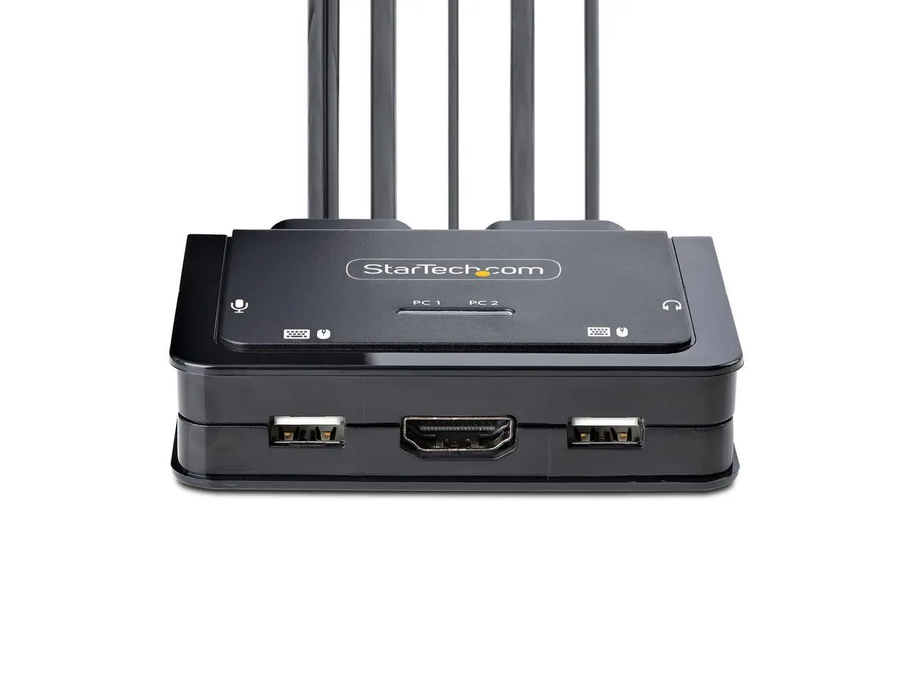 Share a mouse, keyboard, and a 4K 60Hz HDMI display between a USB-A computer and a USB-C HDMI Alt-mode computer, using this KVM Switch with built-in cablesThis Hybrid KVM Switch enables users to switch between a USB Type-A and HDMI-enabled desktop and a USB Type-C (DP Alt-Mode) enabled laptop, to share a keyboard, mouse, audio input/output devices, and a single 4K 60Hz HDMI monitor. Hassle-Free SetupThe KVM switch is bus powered and features built-in HDMI, USB-A, USB-C, and 3.5 mm Audio Input/Output cables. This ensures compatibility and performance between the KVM switch, monitors, and peripherals - without the need to select and purchase the cables required for those connections.