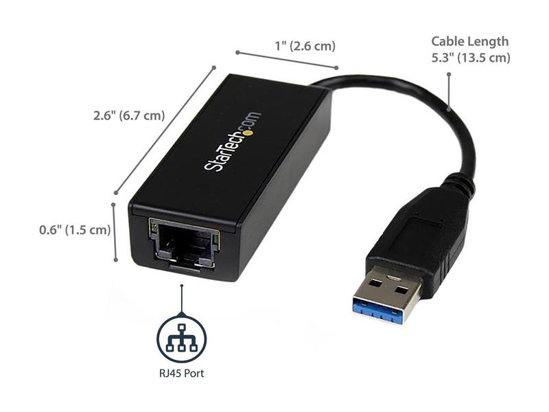 The USB31000S USB 3.0 to Gigabit Ethernet Adapter adds a single RJ45 Ethernet port to a USB-enabled computer system, with support for Gigabit network connections at full bandwidth, unlike USB 2.0 adapters.This compact USB 3.0 network adapter is backward compatible with older USB 2.0/1.x computer systems (speed limited by USB bus), making it the ideal portable replacement network adapter or laptop accessory. Plus, with support for features such as Jumbo Frames, VLAN tagging and Wake on LAN (WOL), the adapter offers a versatile Gigabit network solution for home and business users alike.The USB31000S USB 3.0 Gigabit adapter is backed by a StarTech.com 2-year warranty and free lifetime technical support.