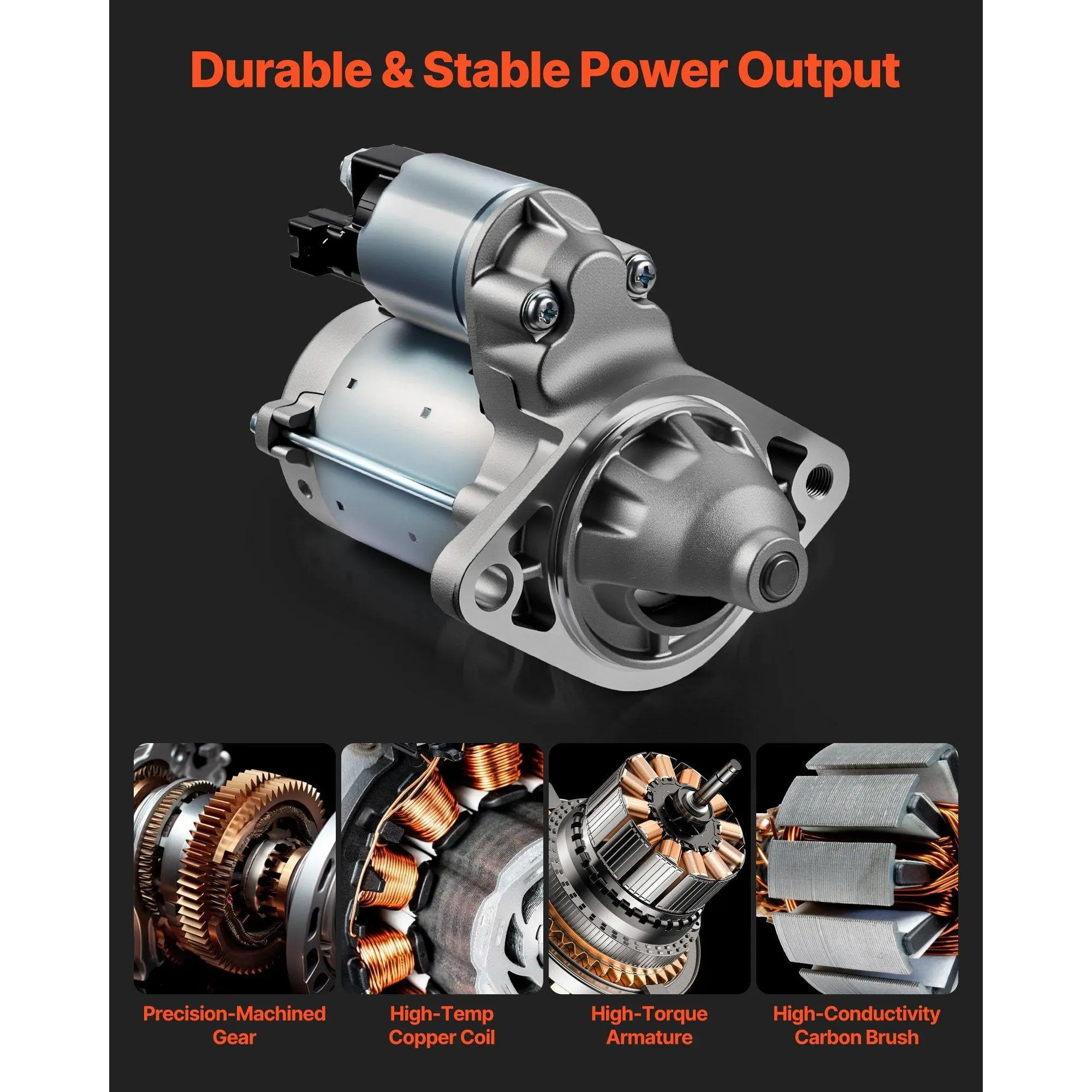 This OEM starter is equipped with premium components, like the precision gear, high-temperature copper coil, and efficient carbon brush, to give you the power you need to start your engine smoothly-no matter the weather.
