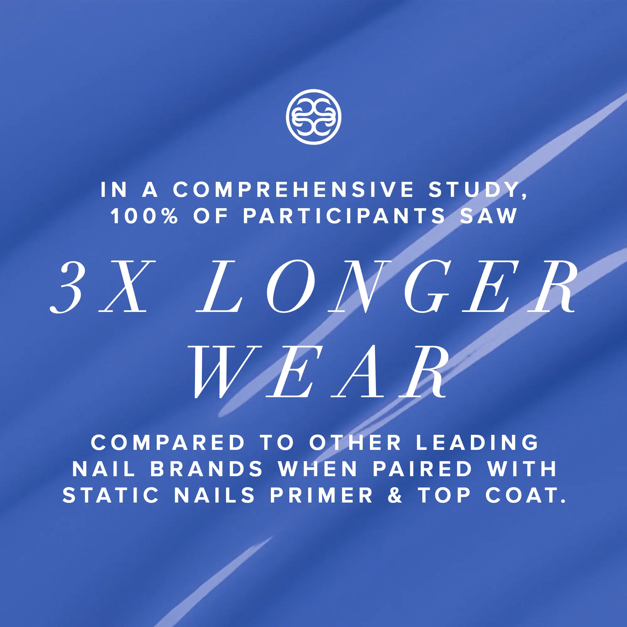 Static Nails Liquid Glass Lacquer is a breakthrough, non-toxic formula loaded with rich pigments and natural antioxidants for a healthier manicure that actually lasts up to 10+ days without chipping when paired with Static Nails Liquid Glass Primer and Top Coat.