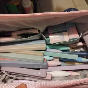 There was pink ink spilled in the pencil case. The highlighter colors are disappointing. And there is an excessive amount of pencil led. Very cute tho