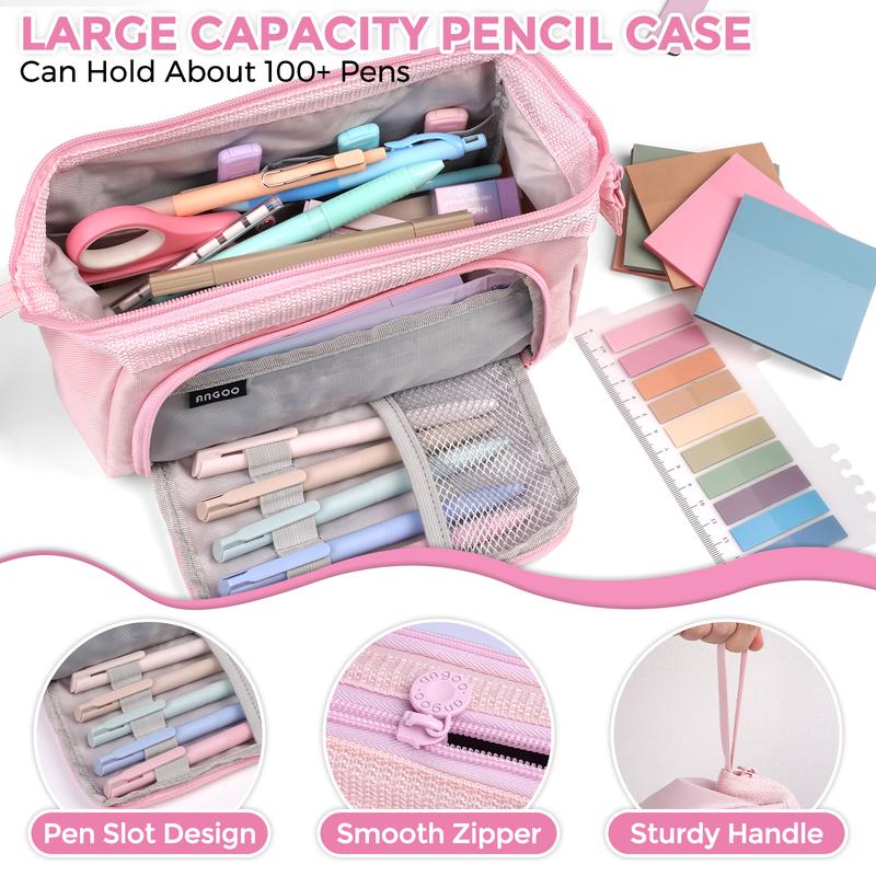 Comes withA LOT of stuff pencil case is cute and durable def worth the price