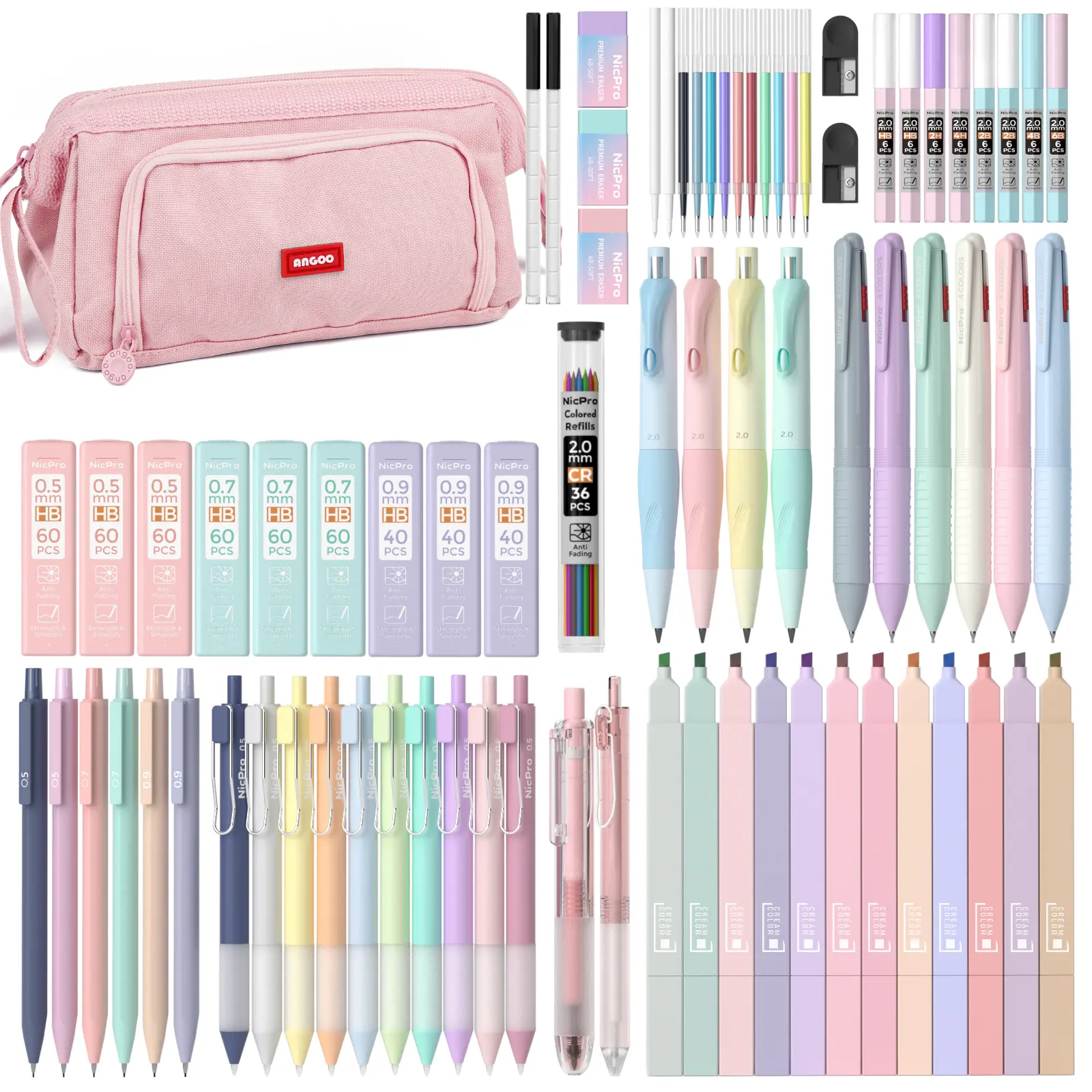 Kit escolar súper lindo con portaminas de colores pastel, cómodo para escribir y perfecto para niños. Incluye repuestos y todo lo necesario para el regreso a clases. ¡Práctico, bonito y funcional!