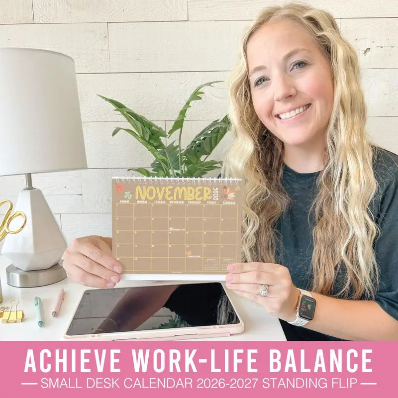 Elevate your daily planning with our 2026-2027 Standing Flip Planner. This 6x8-inch calendar ensures you never miss an important date. Perfect for home, office, or school, it helps manage business meetings, birthdays, or dinners. Effortlessly navigate through the months with its easy-to-flip pages.
