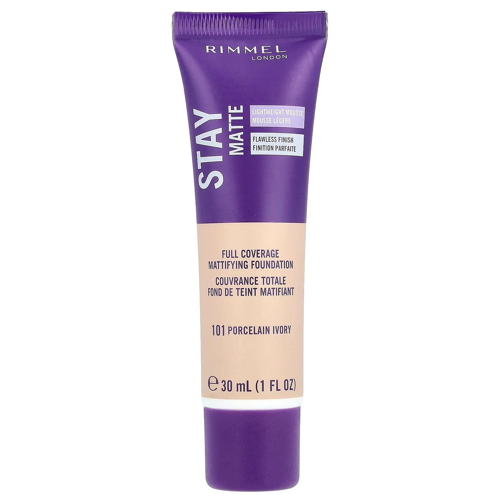 5. Rimmel London Stay Matte, Full Coverage Mattifying Foundation, 101 Porcelain Ivory, 1 fl oz (30 ml)