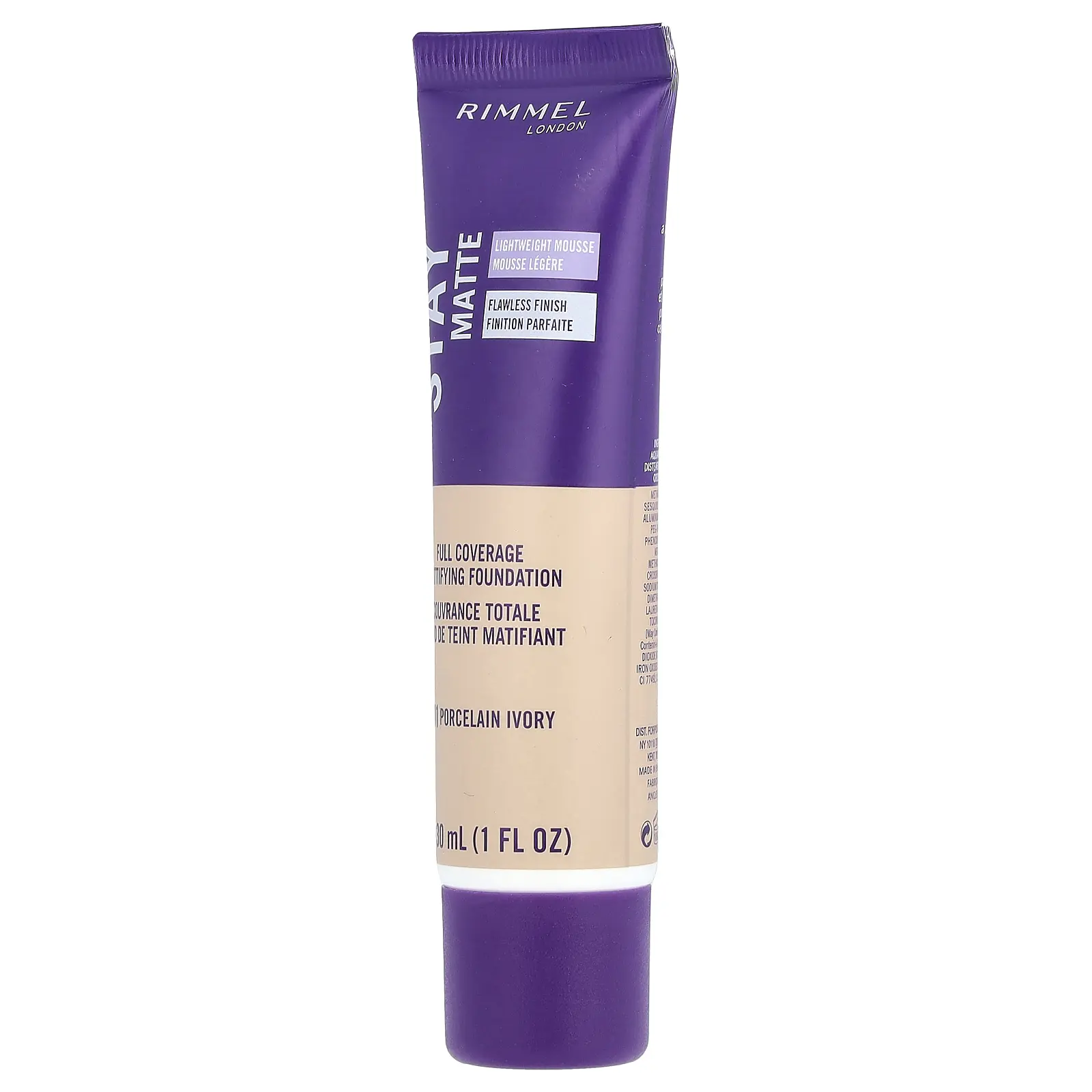 Rimmel London Stay Matte, Full Coverage Mattifying Foundation, 101 Porcelain Ivory, 1 fl oz (30 ml)