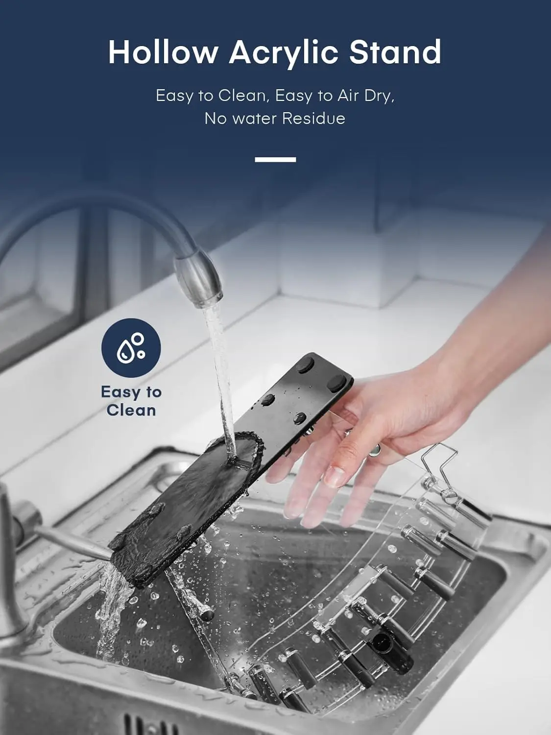 ·Stylish Knife Set: The transparent acrylic stand and black knife set is cool and elegant, which suits both modern and traditional kitchens. Hollow knife stand is easy to wash, no stains remain. The flat acrylic stand is space saving. You can find out the knife you need clearly through this transparent acrylic stand