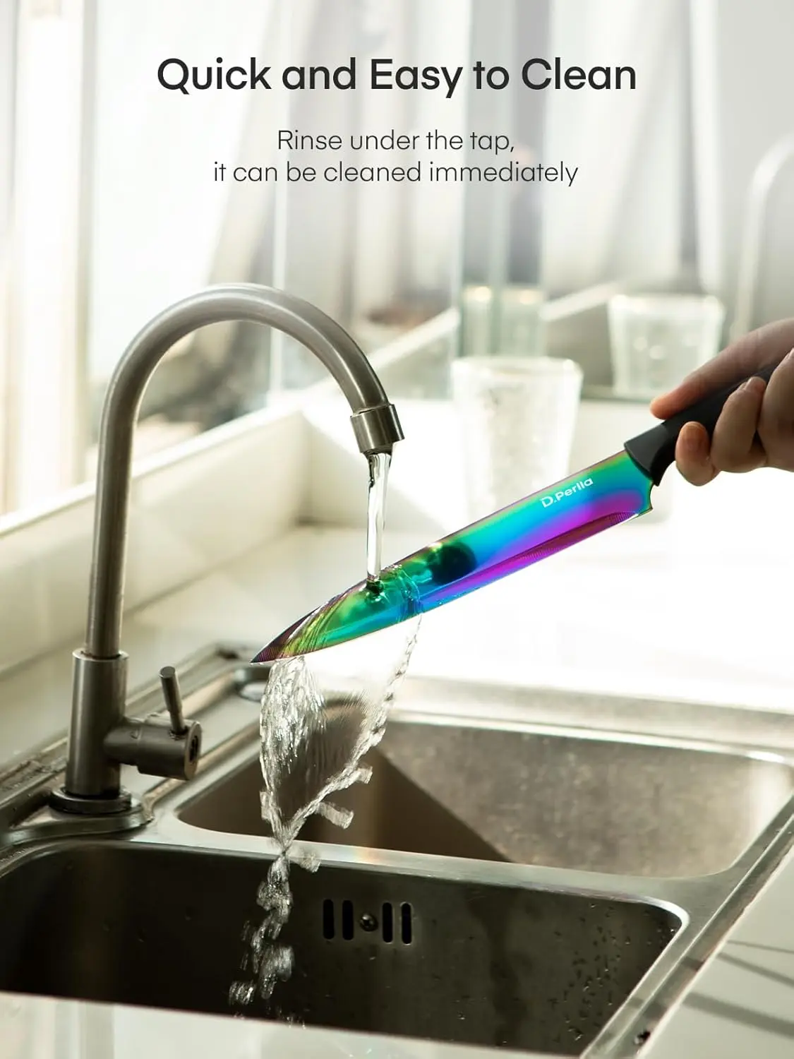 ·Ergonomic Soft Touch Handles: All knifves in the range feature ergonomic soft touch handles to provide well balance, you can enjoy fatigue free cutting. Non slip finish that ensure a safe grip while cutting