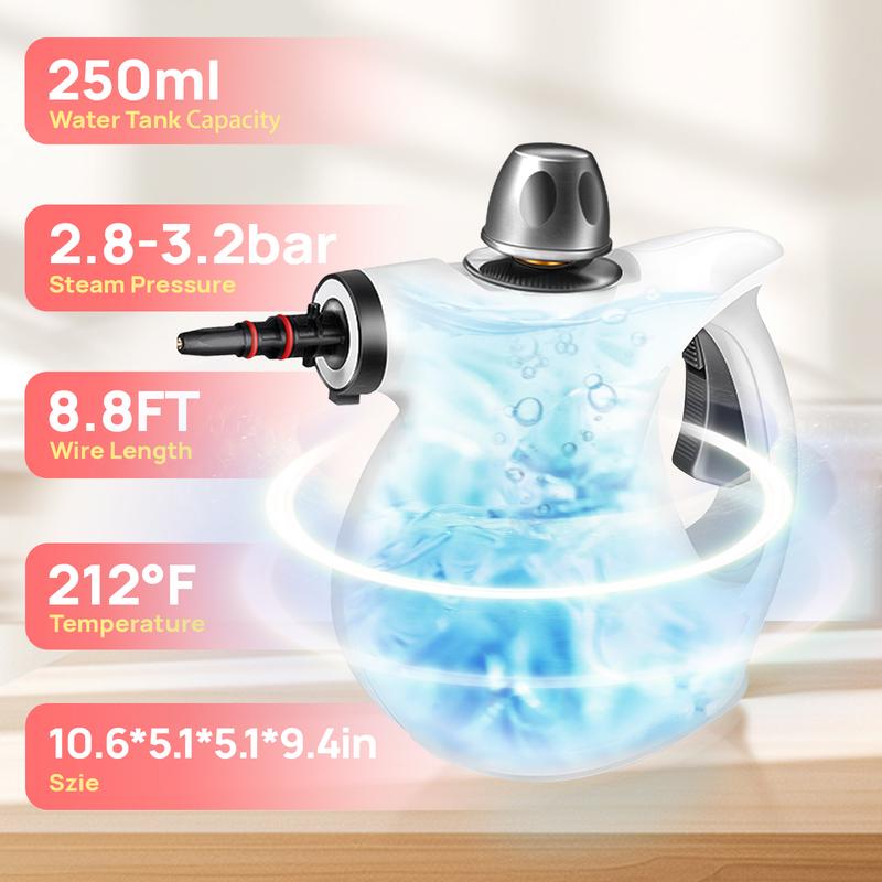Large Water Tank: 350ml tank (use up to 250ml) for longer cleaning sessions without frequent refills. Ergonomic handle for comfort.