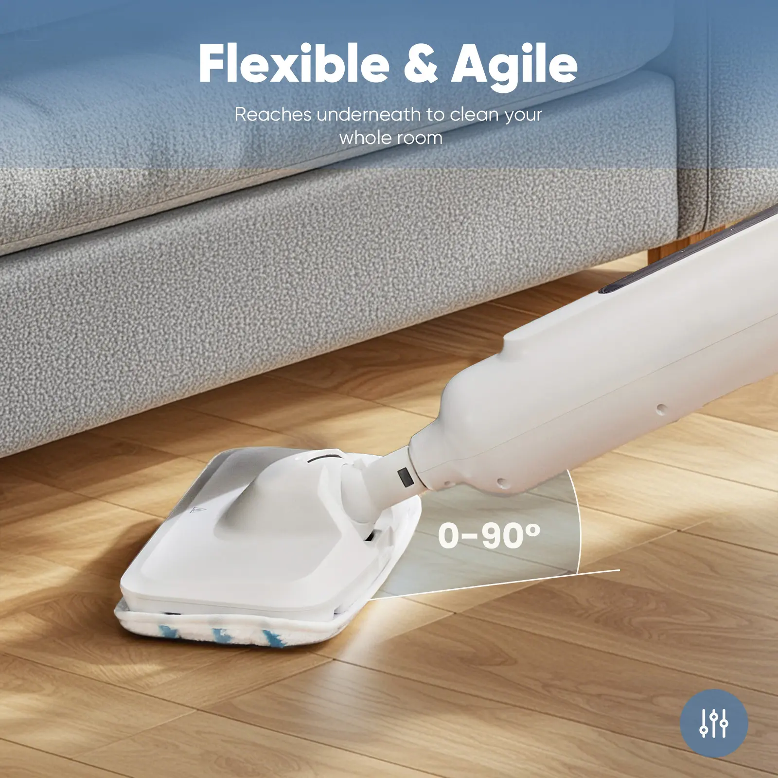【Flexible & Agile】Our steam mop comes with a 16.4ft power cord and swivel mop head for maximum coverage, effortlessly cleaning every corner, even under sofas and tables.