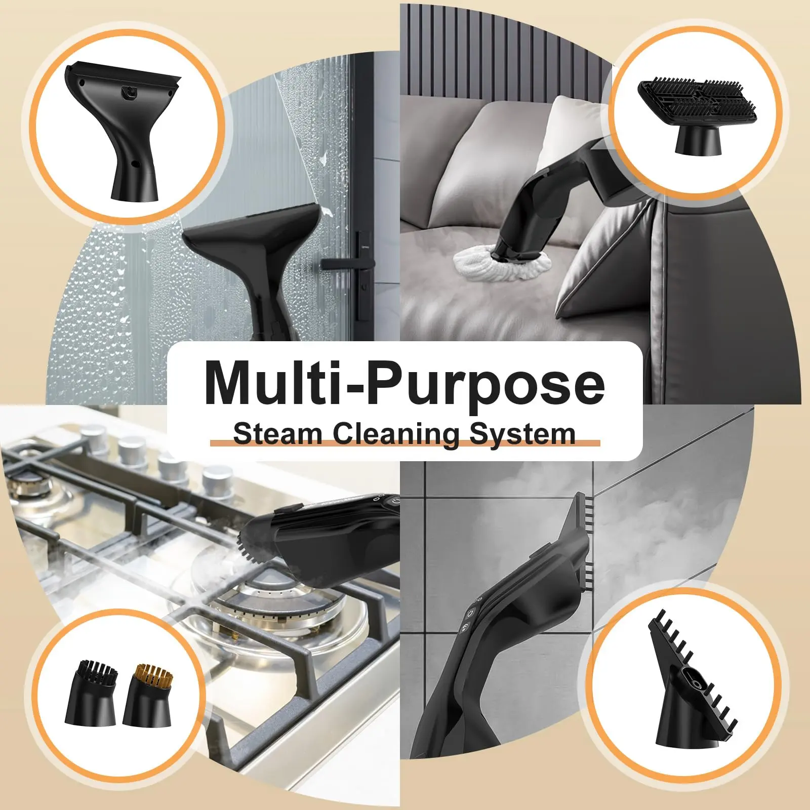 ·【All-in-One Steam Cleaner】 Includes 17 accessories for all-round cleaning. It is not just a steam mop, but also a detachable handheld steam cleaner. Easily clean bathroom faucets, wall grouting, dirty kitchen grills, or even your car wheels.