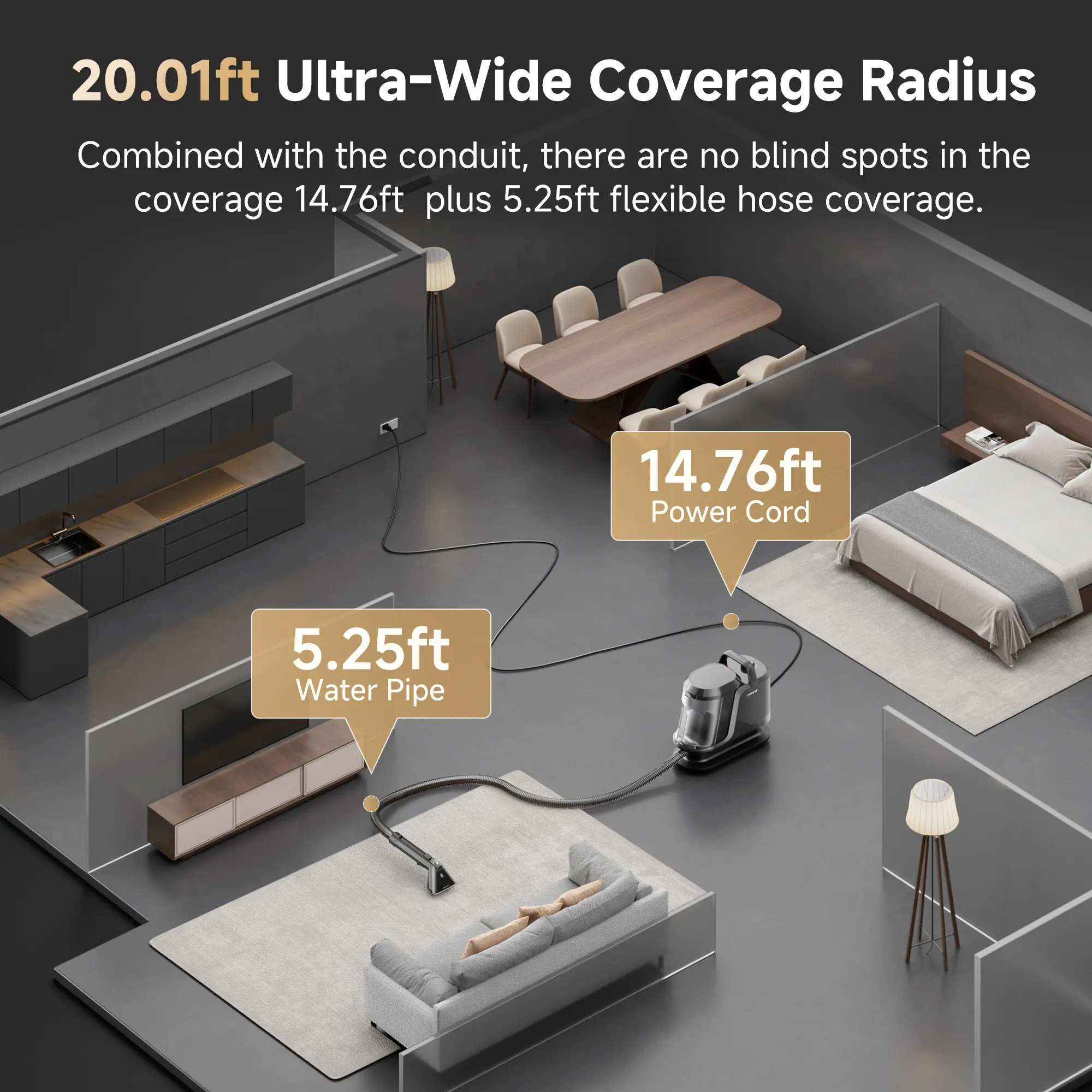 This is a multi-functional cleaner machine that can effectively clean every corner. The steam function can also effectively disinfect at high temperatures and remove stubborn oil stains. 18Kpa suction is incredibly strong. I'm so happy with my purchase and I think you will too!!