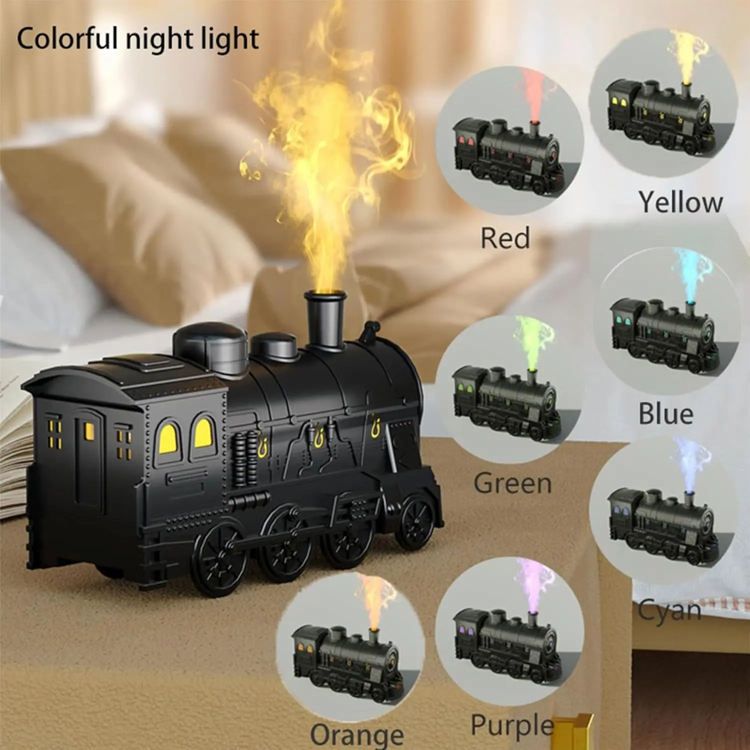 Essential Oil Diffuser, Steam Train Aromatherapy Diffuser, 300 ml Retro Train Humidifier, with 7 Colors Light 2 Mist Modes, Simulate Train Sound,Bedroom Home Office(Black)