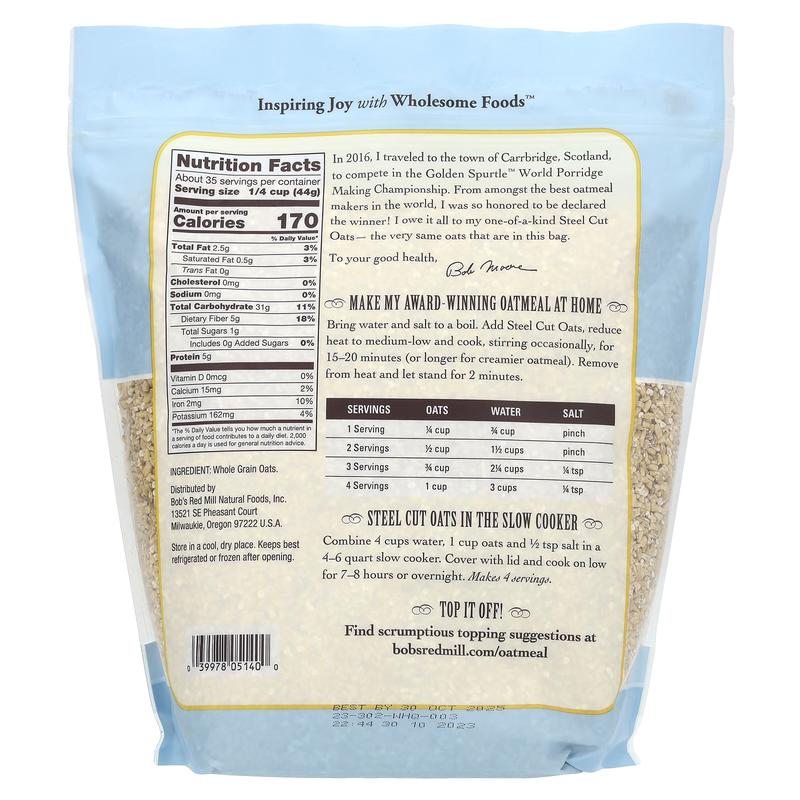 5. Bob's Red Mill Steel Cut Oats, Whole Grain, 54 oz (1.53 kg)
