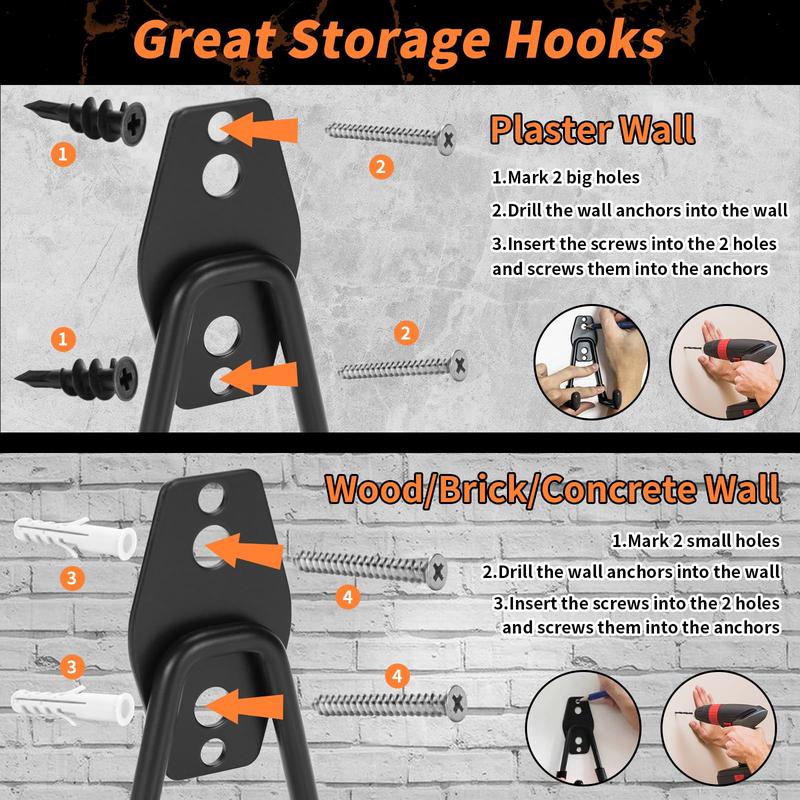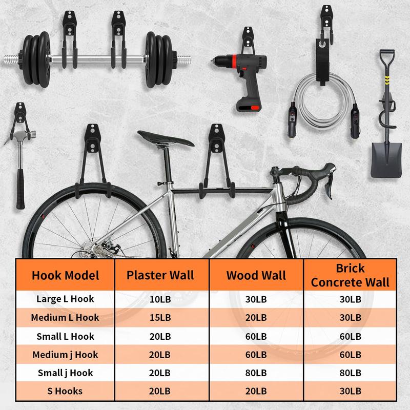 Transform your garage space with these durable hooks. They provide a practical solution for keeping your belongings organized and within reach. Order now and streamline your storage needs effortlessly!