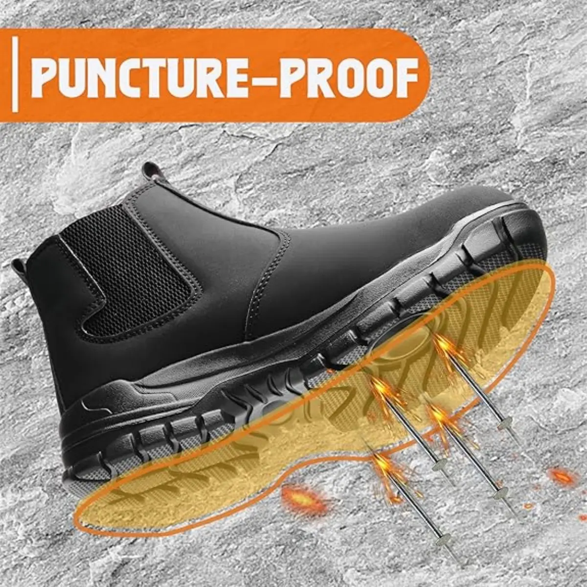 ·Puncture-Resistant Kevlar Midsole & Slip-Free GripThe 4mm Kevlar midsole shields against sharp objects like nails, glass, and screws, preventing punctures. Paired with a slip-resistant rubber outsole, these shoes offer reliable traction on wet, oily, or uneven surfaces, reducing the risk of slips and falls.