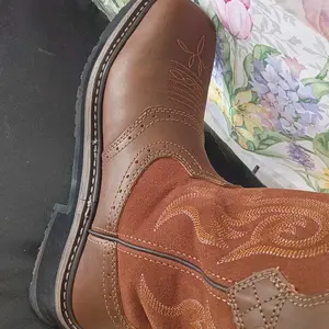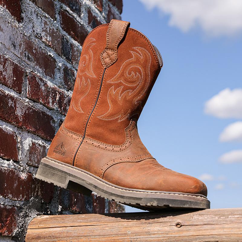 The pull loop design allows for quick and easy on and off, while the splash-resistant upper ensures your feet stay dry in both indoor and outdoor environments. These men's western-styled work boots are practical and stylish.