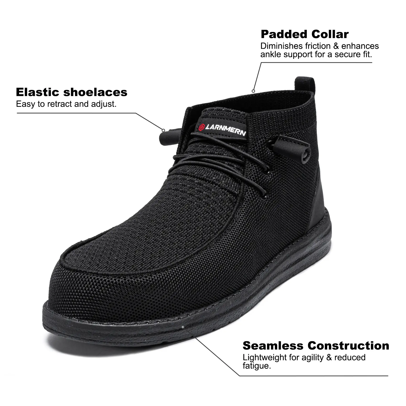 SteelGlide, the brainchild of Larnmern, emerged to redefine the blue-collar experience. With an extra-wide design for swollen feet, advanced elastic material, and a feather-light feel, they're the antidote to workday discomfort. Clock in for a 12-hour shift or take a stroll after work – either way, SteelGlide has you covered. Light as a feather, tough as nails – experience life's every step with SteelGlide.
