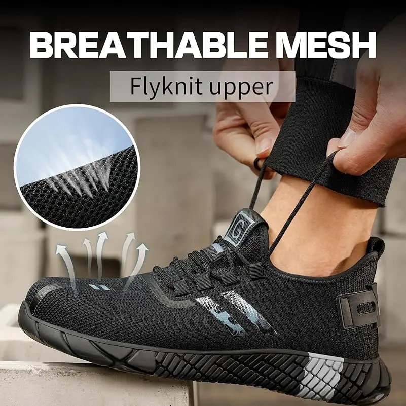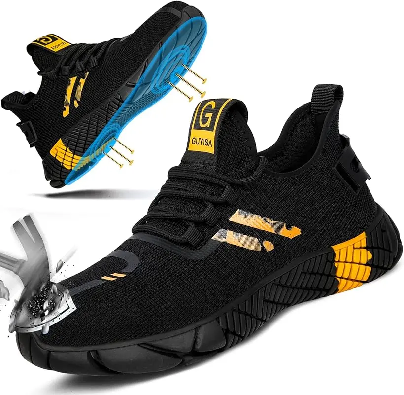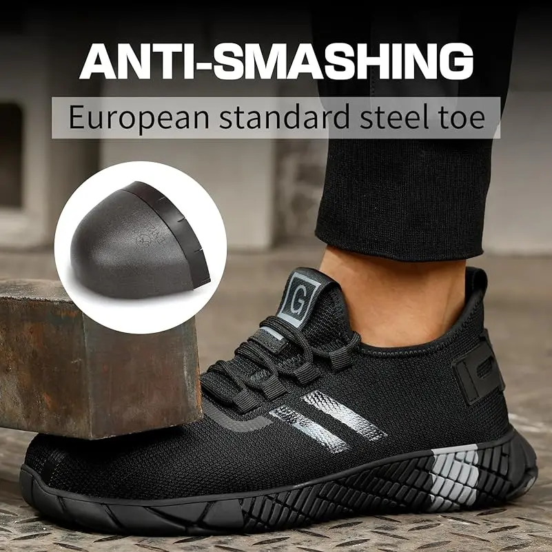 RUMFEN Steel Toe Shoes for Men Composite Shoes for Men Work for Women Safety Steel Toe Sneakers Lightweight Comfortable for Roofing Indestructible Steel Toe Tennis Shoes