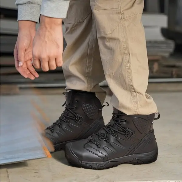 Dual Protection Design: Featuring a reinforced steel toe and rubber toe cap, these men's steel toe cap work boots offer a powerful shield against heavy objects. This double layer of defense guarantees safety in the most demanding work environments, providing peace of mind and confidence with every step.