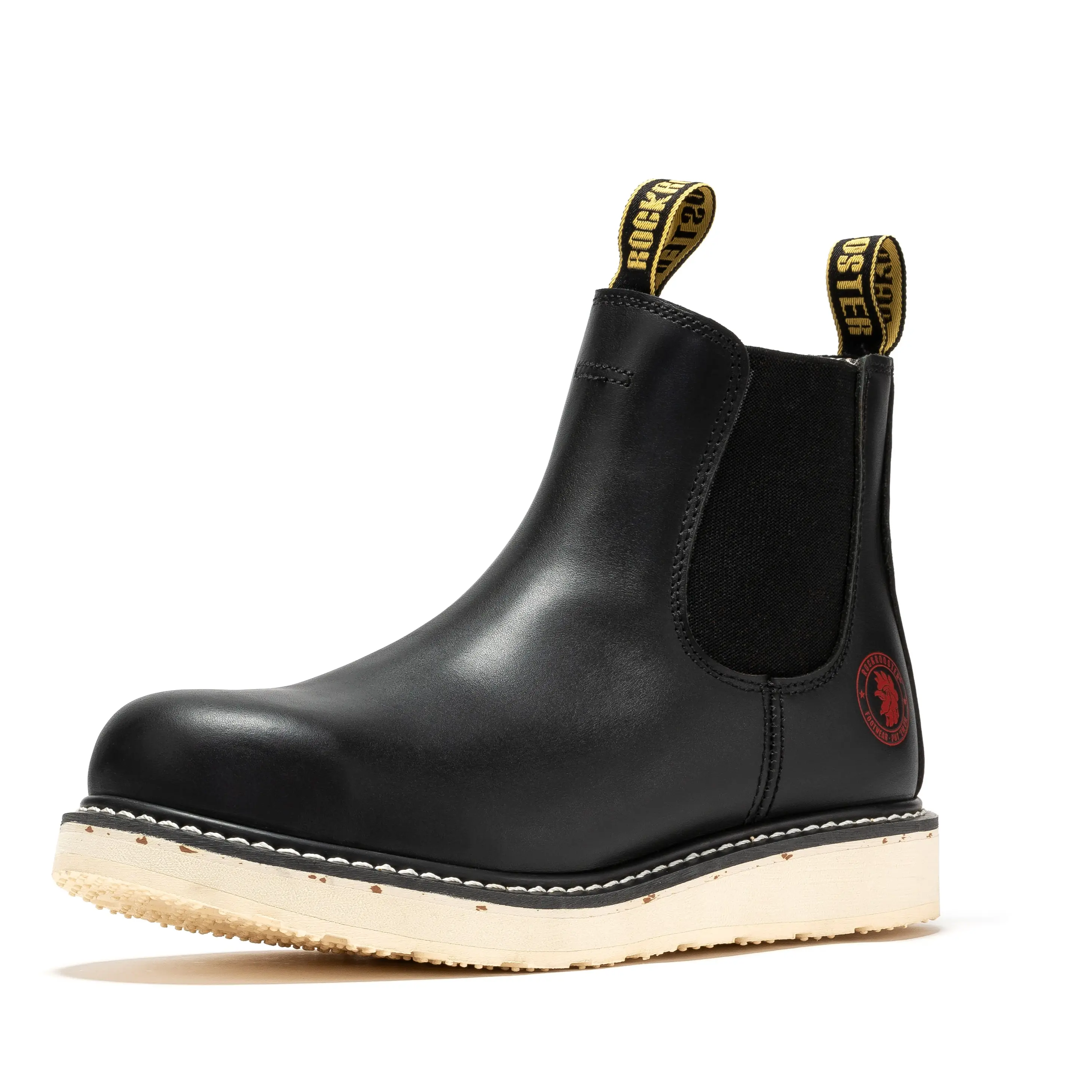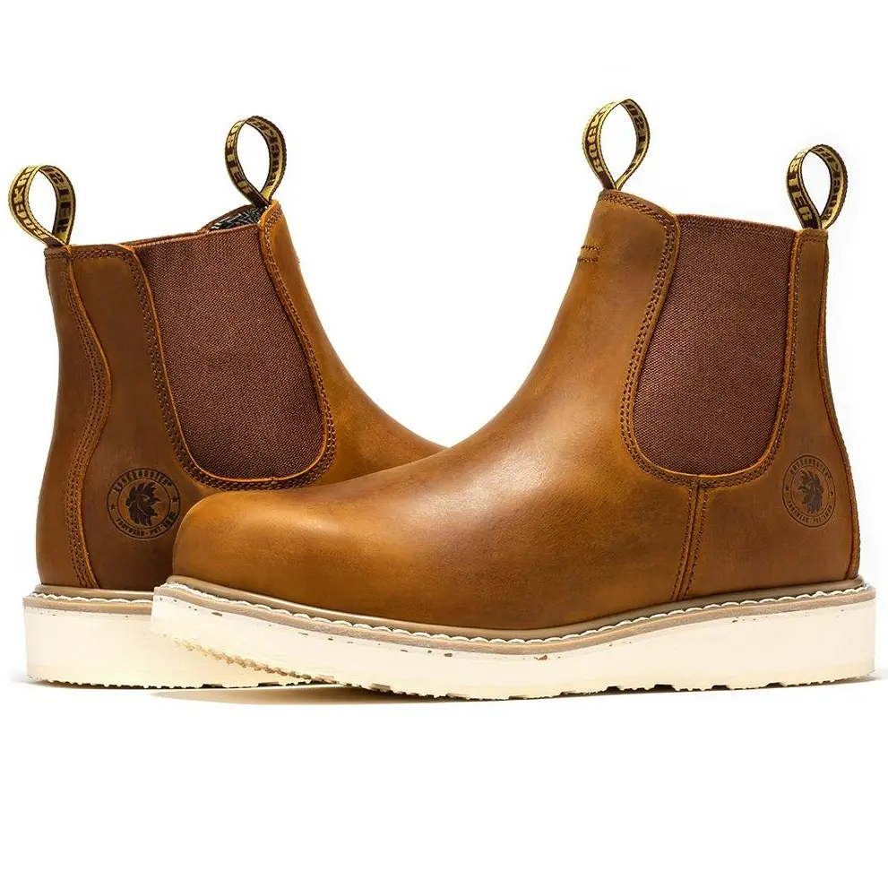 ROCKROOSTER Steel Toe Work Boots for Men Round Toe Full Grain Tumbled Leather Slip Resistant Safety Shoes - Boy Footwear Closed