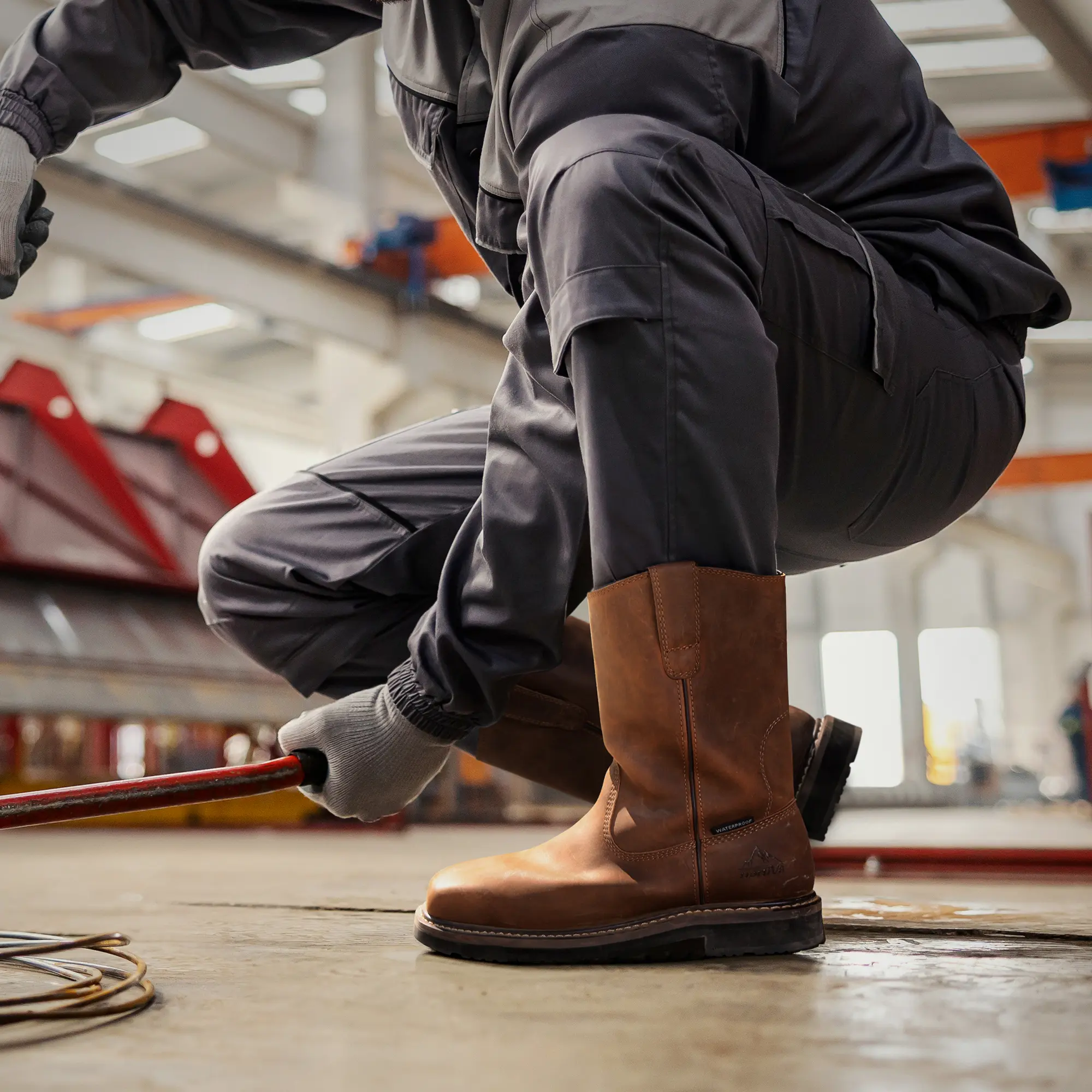 NORTIV 8 Steel Toe Boots for Men Waterproof Pull-on Wellington Work Boots Boy Footwear Closed Comfort Walking Shoes Rugged Leather Upper Construction Site Tough