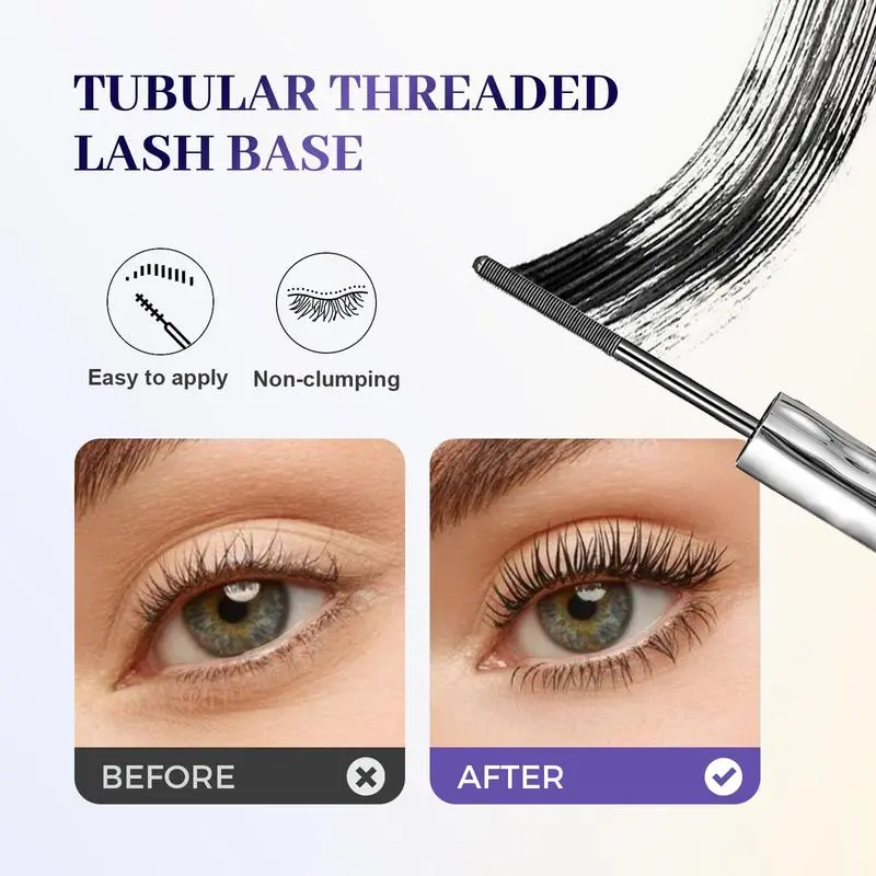 Steel tube spiral mascara, featuring a special spiral brush head made of steel – long-lasting and waterproof, providing 24-hour wear, easy to apply, and keeps each lash individually long and curled for an extended period.