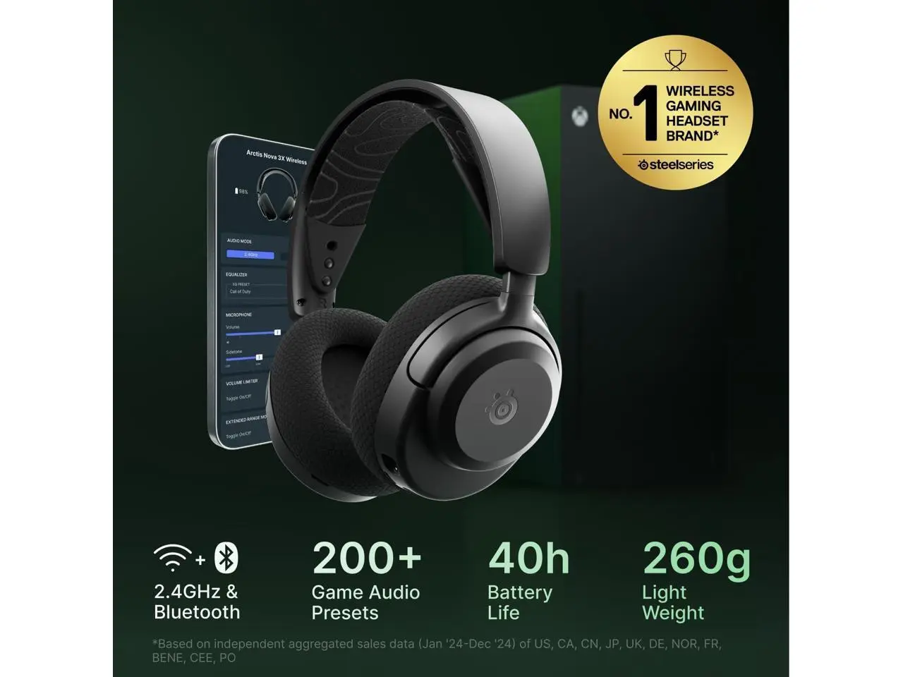 SteelSeries Arctis Nova 3X Wireless Multi-Platform Gaming Headset - Mobile App Control, 40 HR Battery, Neodymium Magnetic Drivers, 2.4GHz/Bluetooth, Xbox, PS5, PC, Switch, Mobile - Black