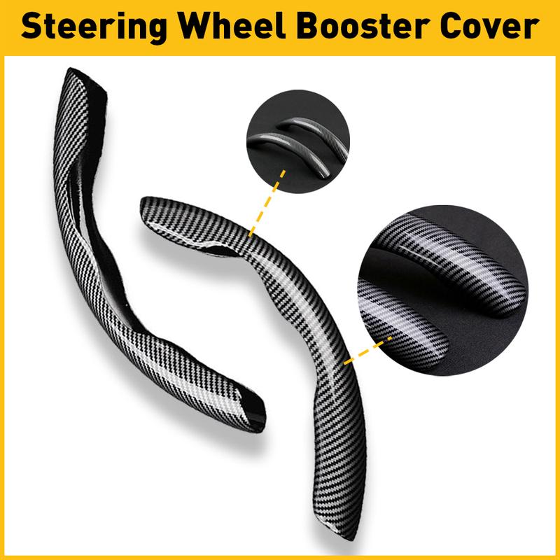 The car steering wheel booster with carbon fiber design fits for the steering wheel perfectly, the diameter is 37-38 cm /14.5-15 inches,which is suitable for O and D wheels. For better match, please measure the steering wheel before purchasing.