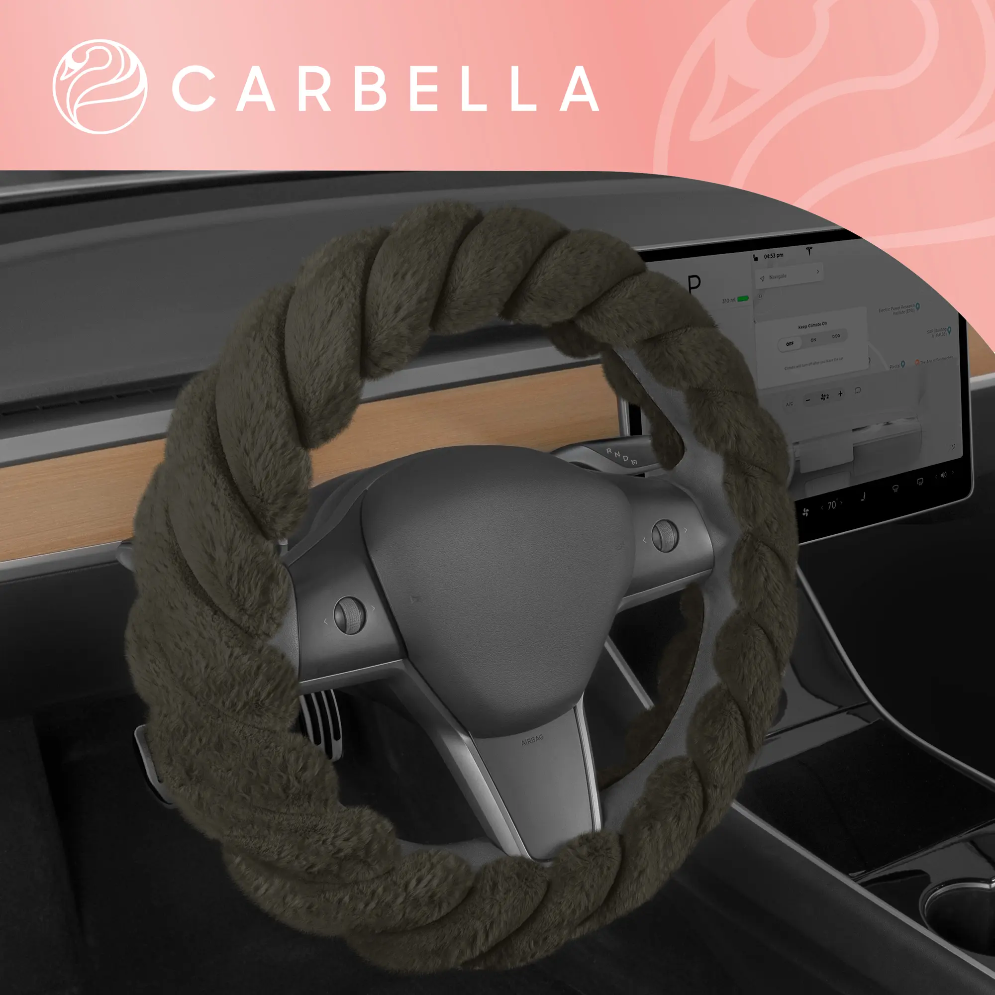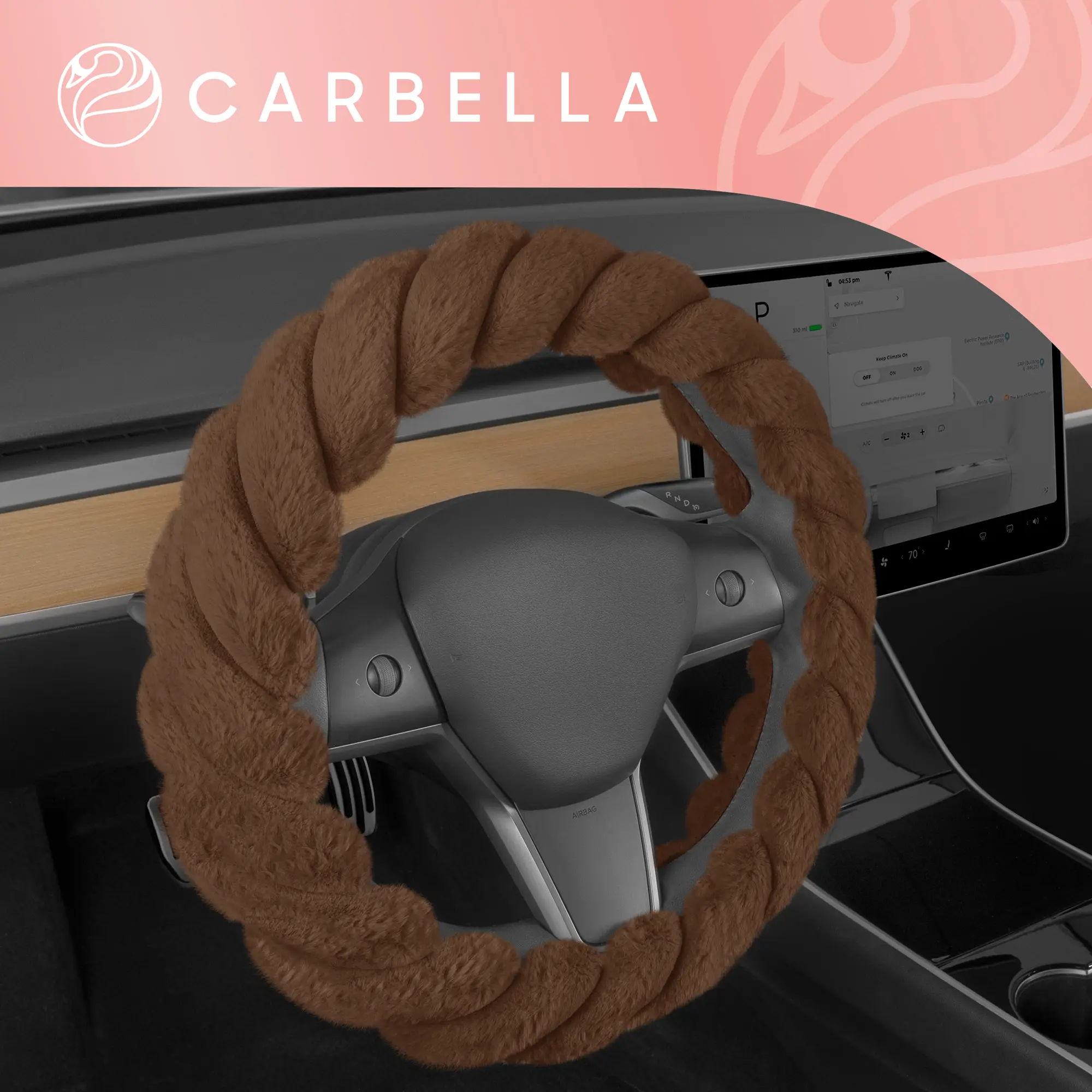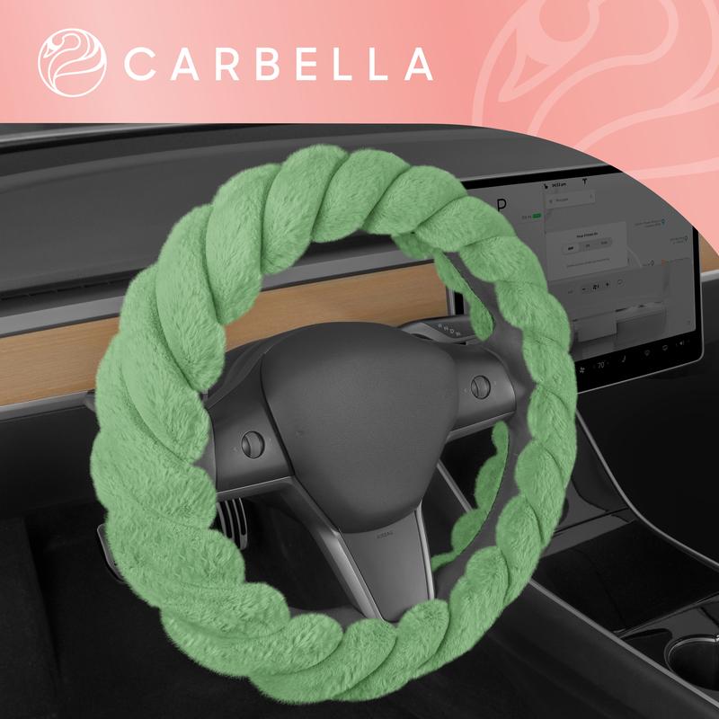 Carbella Twisted Fur Steering Wheel Cover, Soft Plush Fluffy Comfort, Fits Standard Wheels 14.5-15.5 Inches