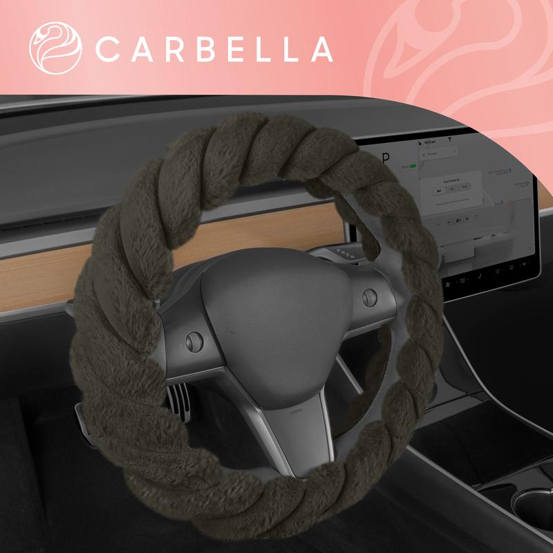 5. Carbella Twisted Fur Steering Wheel Cover, Soft Plush Fluffy Comfort, Fits Standard Wheels 14.5-15.5 Inches Automotive Truck