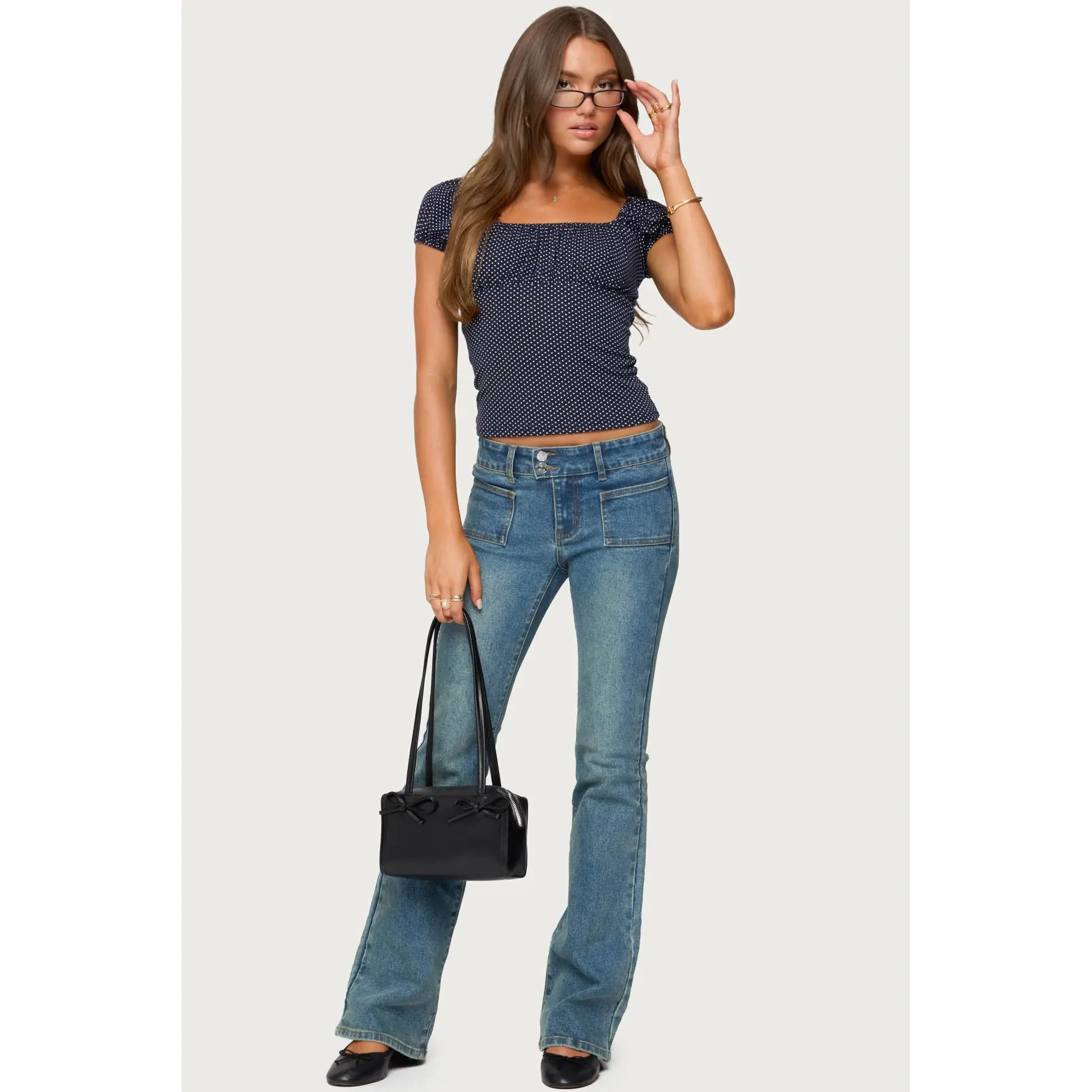 I loveeee tops that look like this I think they are so flattering, also this is definitely true to size and very cute! The polka dots and the top as a whole is adorable and I will wear the heck out of this top! I fear they ate with this one!