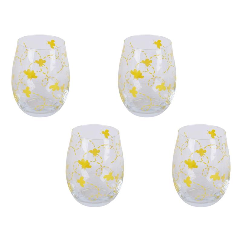 ·Includes four stemless wine glasses with patterned design
