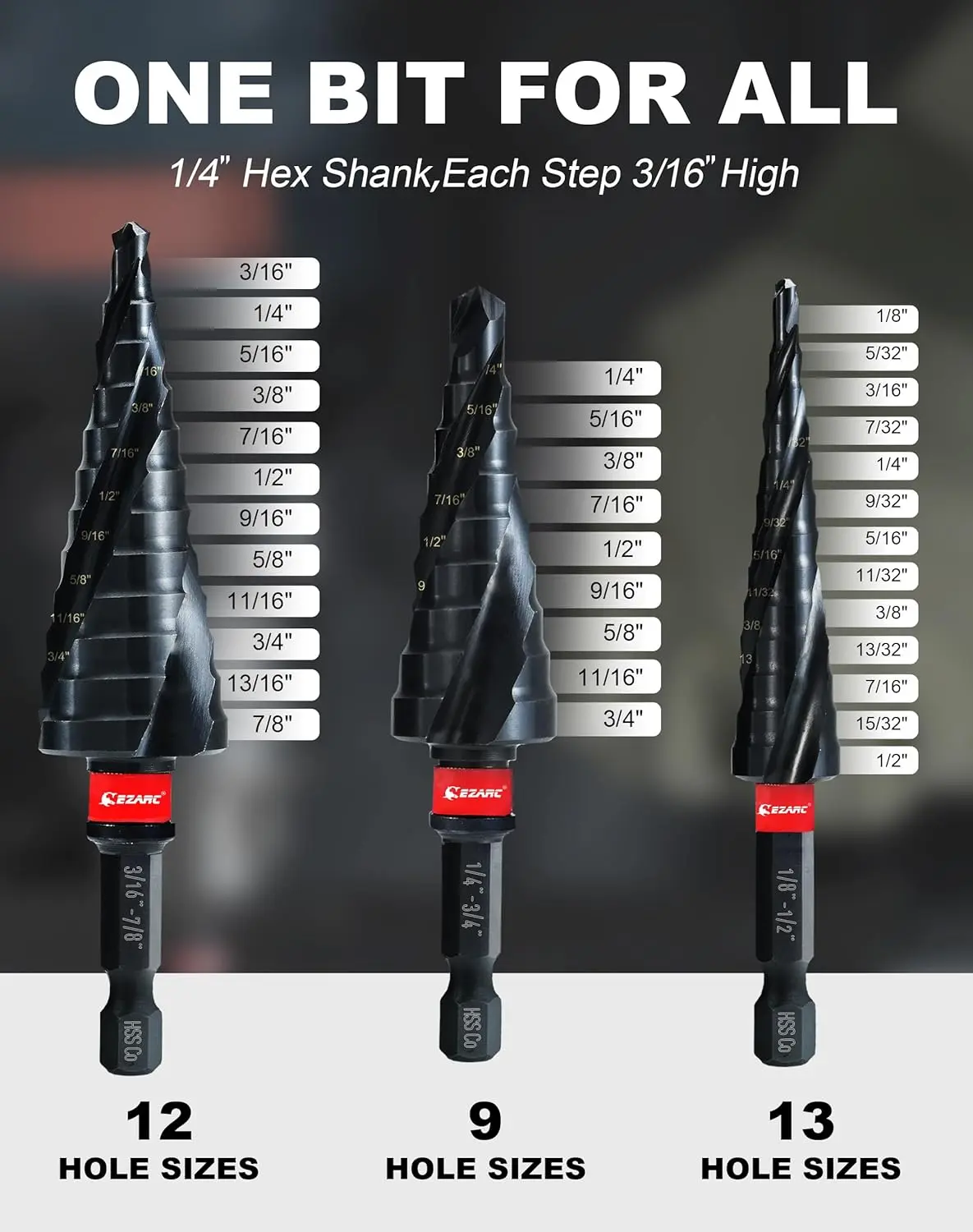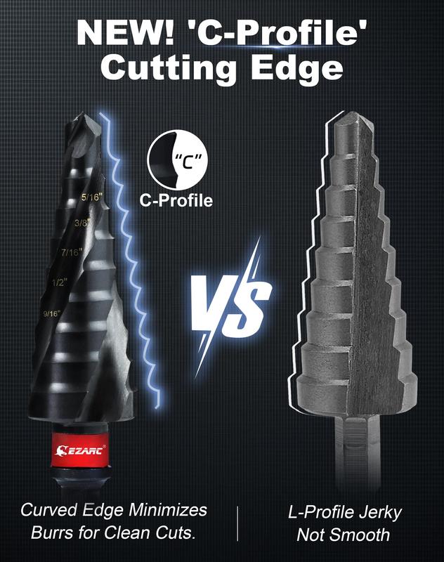 EZARC Step Drill Bits feature a triple-flute design for enhanced stability, effectively addressing issues of deviation during the cutting process. Additionally, 'C-profile' cutting edge ensure smoother cutting and 2X increase in cutting speed.