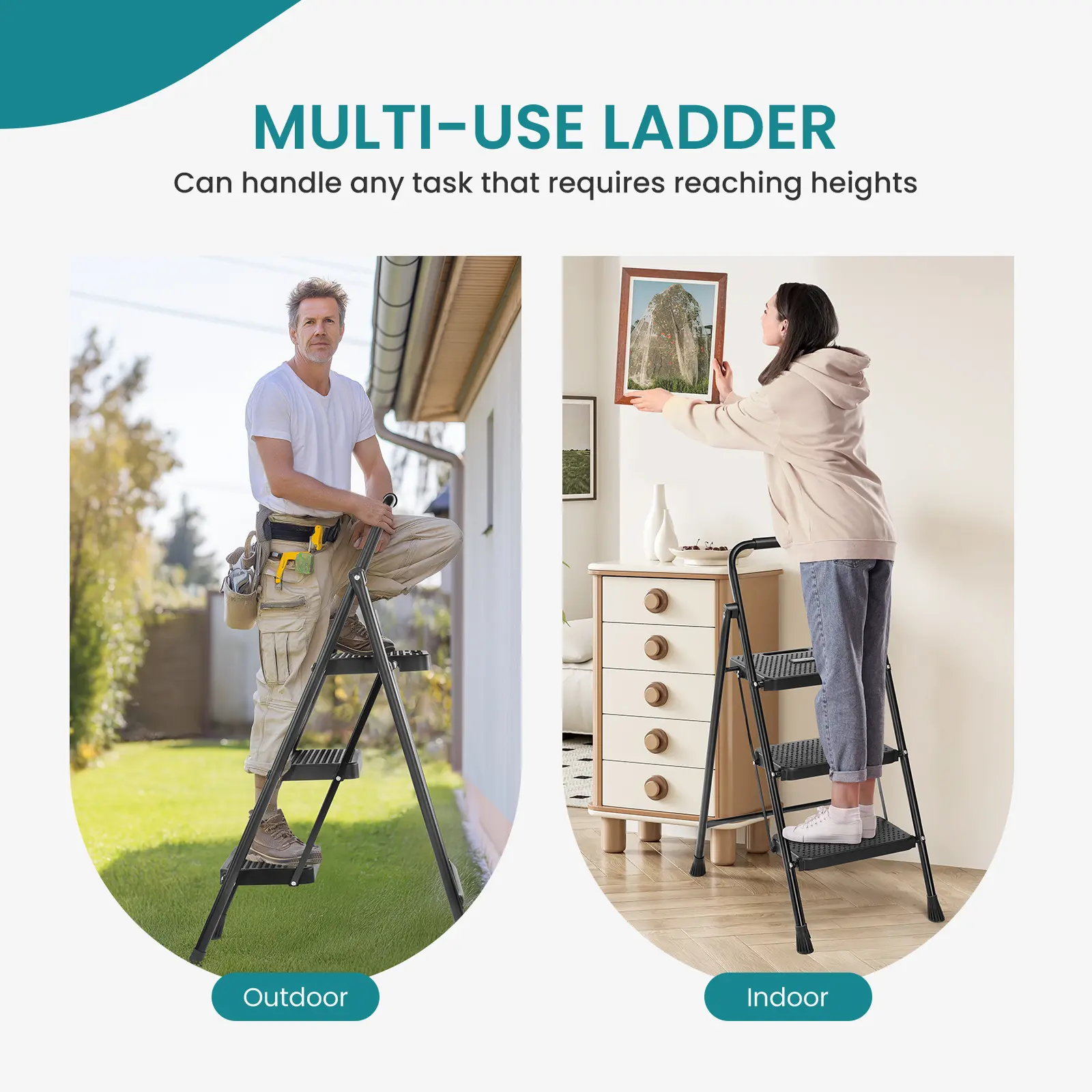 This is a great step ladder, very sturdy, love the extra wide steps.