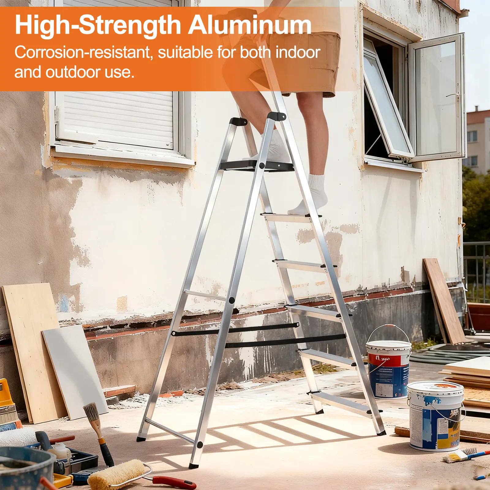 Engineered for exceptional load-bearing capacity, this tall step ladder safely supports significant weight. Its sturdy design ensures stability under load, making it ideal for demanding tasks indoors and outdoors. 🛠️